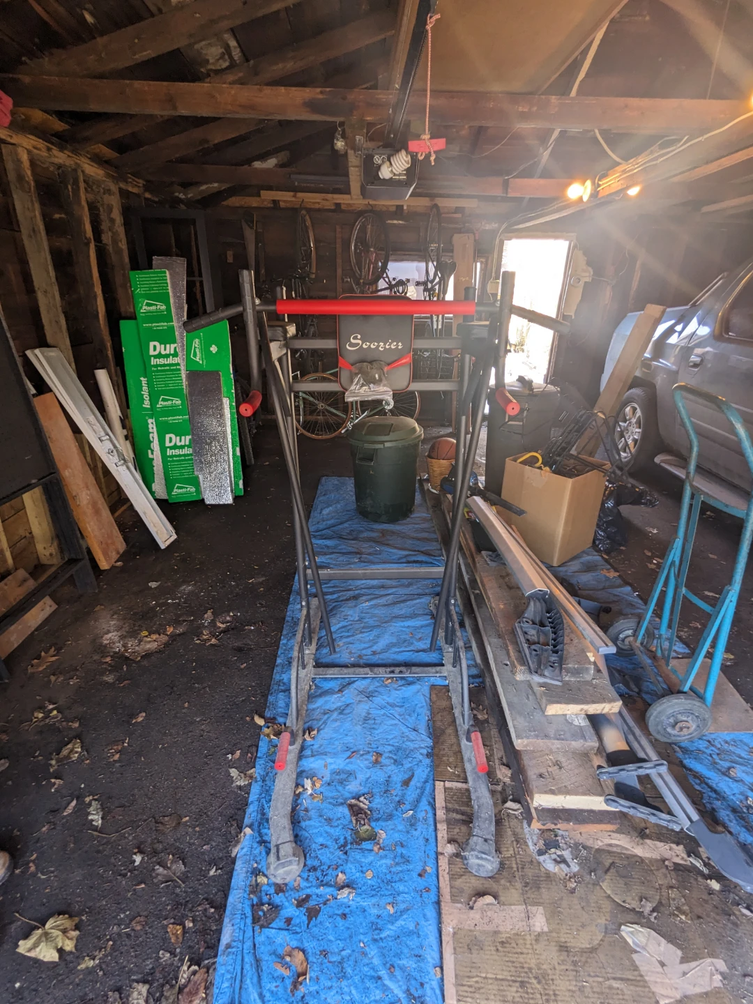 Top bar has been disassembled for easier transport. Was stored in garage so the legs need a clean (dusty) but is in otherwise good condition, barely used!