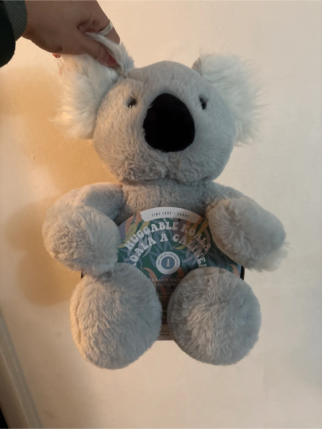 This is a huggable koala plush toy. It's designed to be microwaved for warmth. The inner bag holds heat for up to 60 seconds depending on wattage.