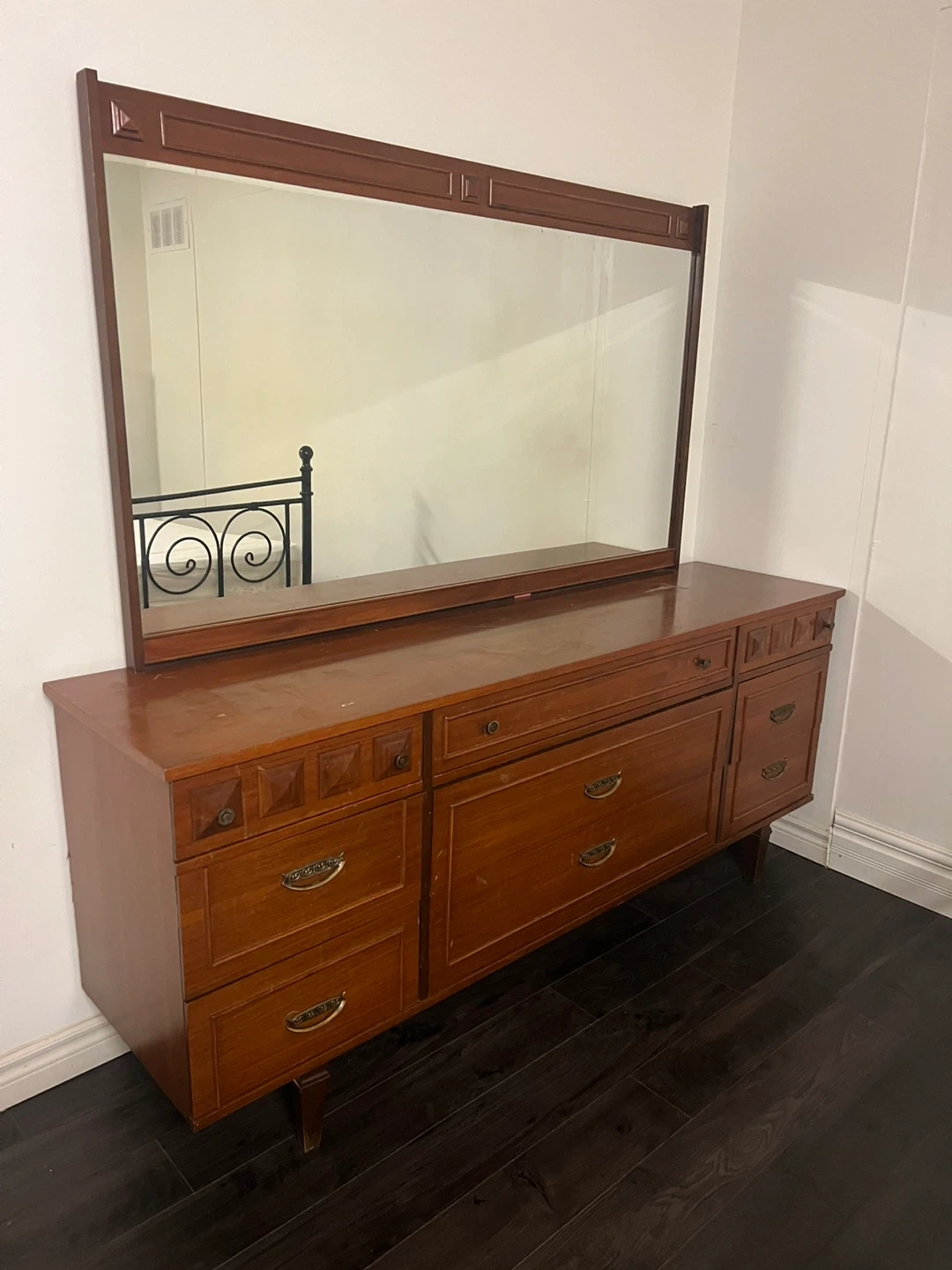 Vintage Wooden Dresser with Mirror