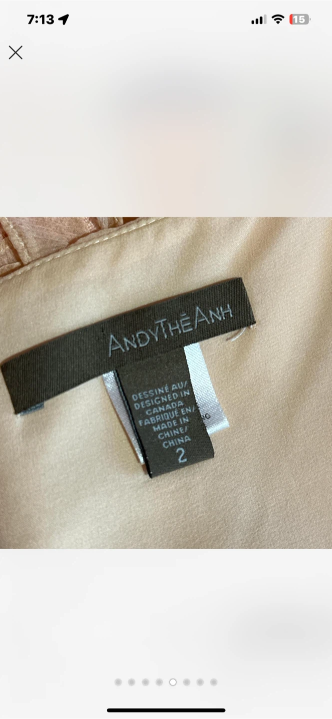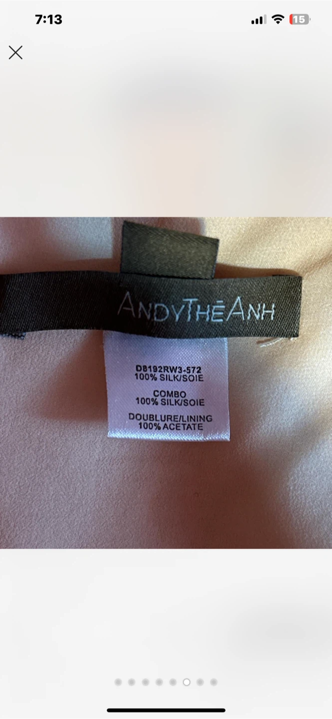 Selling a beautiful AndyTheAnh dress. It's a size 2 and made of 100% silk with a 100% acetate lining. The dress features lovely floral details and a flattering silhouette!