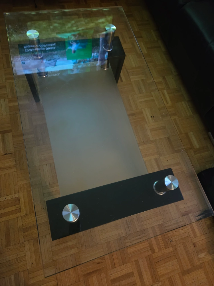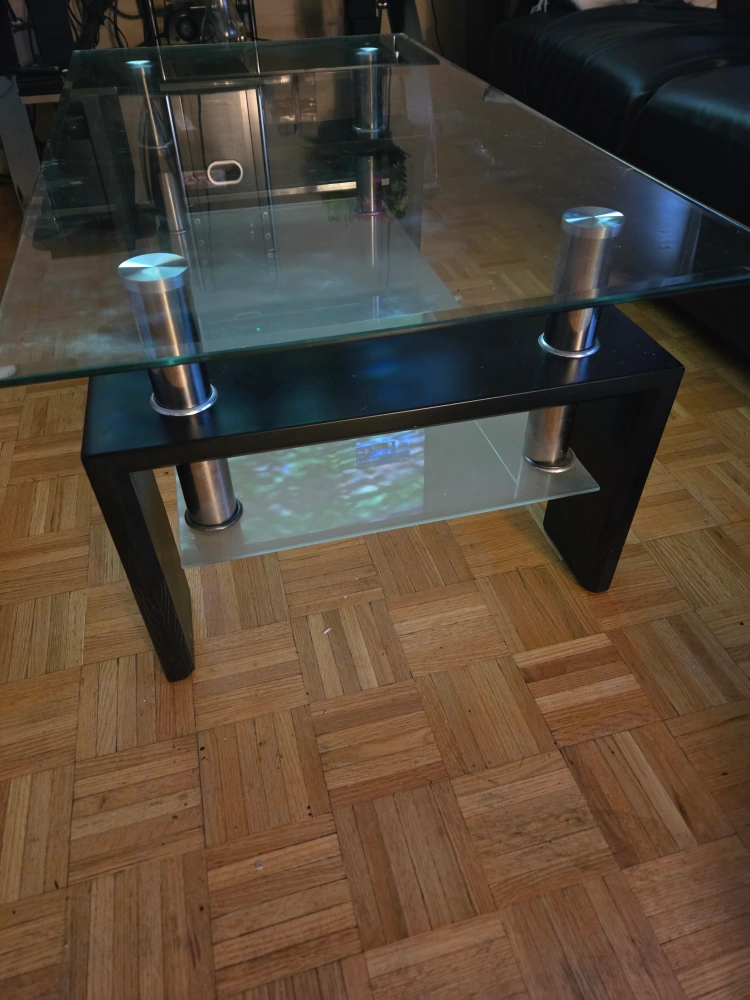Selling a glass top coffee table with a black base. It's in great condition and would look lovely in any living room!