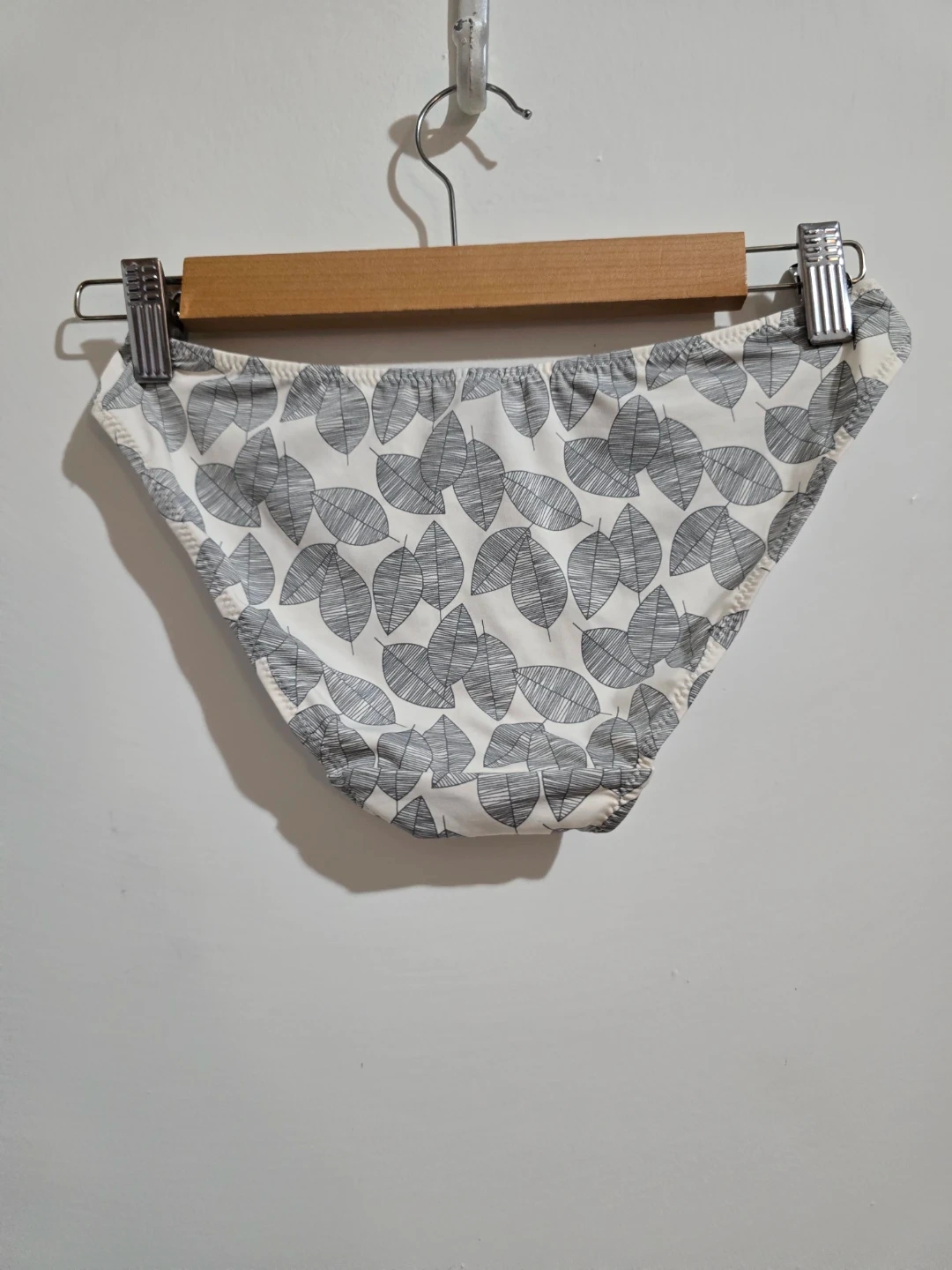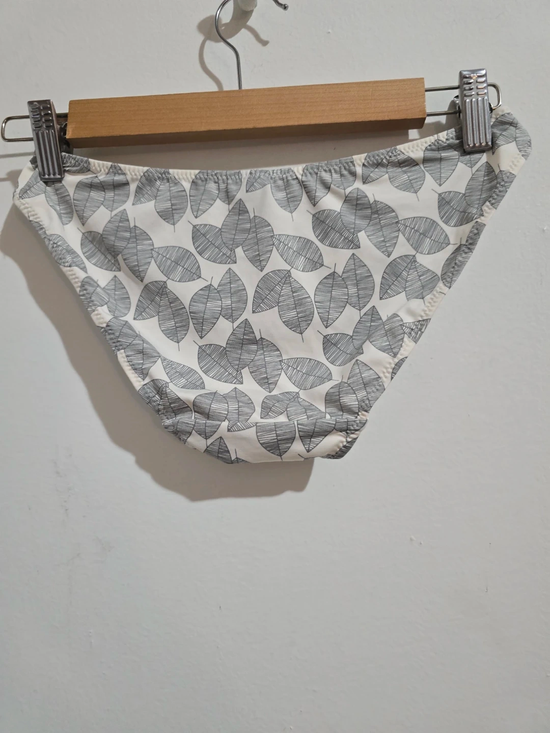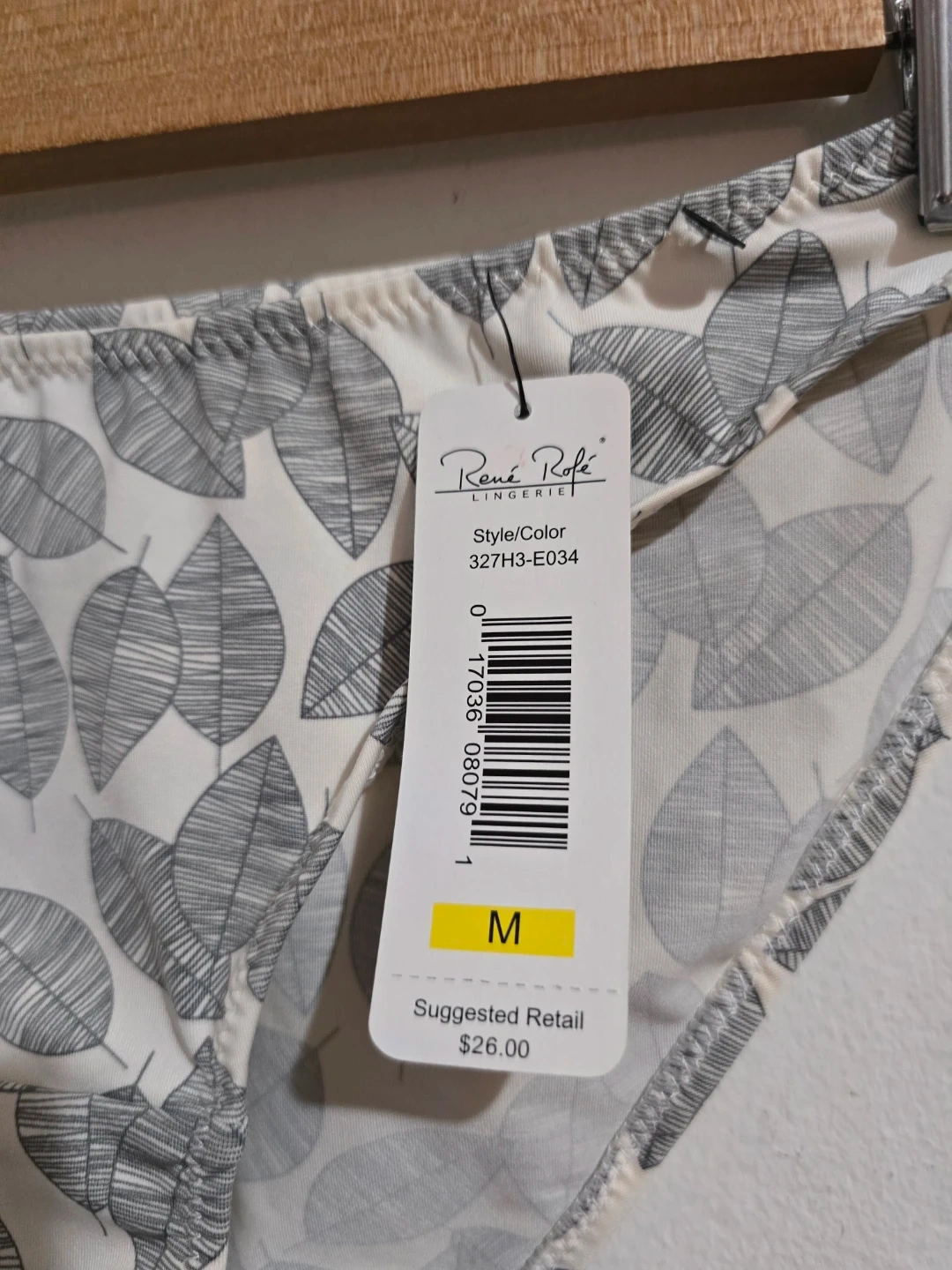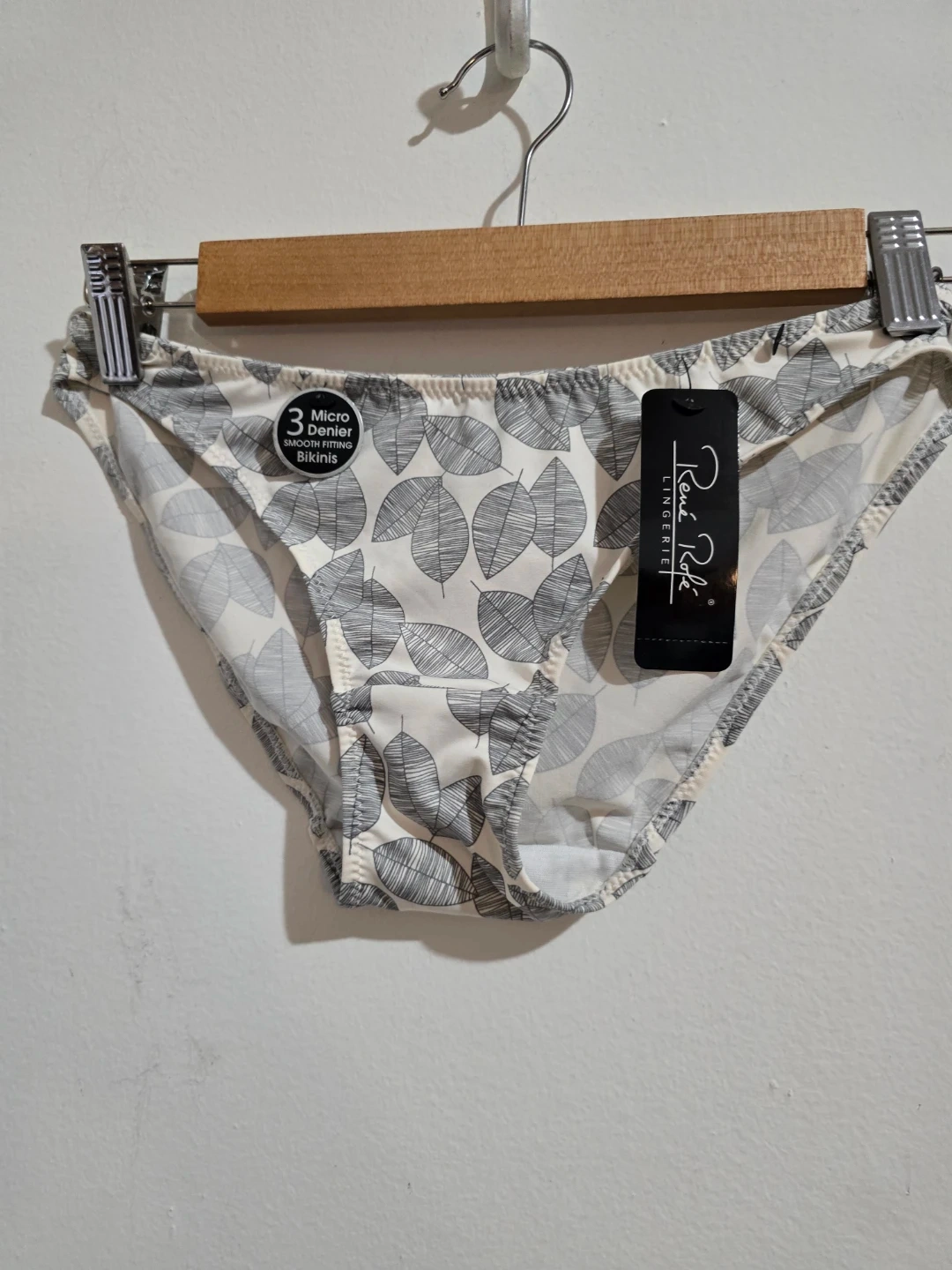 These René Rofé bikini briefs feature a stylish leaf print. They're made from 3 Micro Denier material for a smooth feel. Size M. Suggested retail $26.00.
