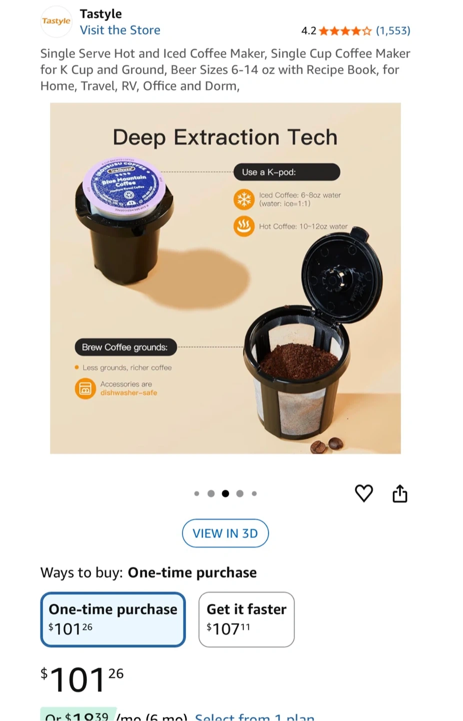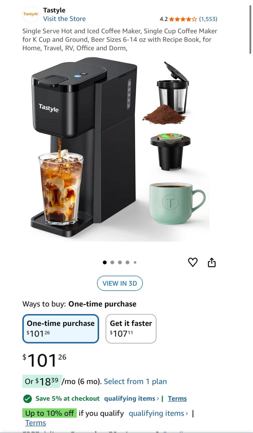 It can brew with a single serve pod or ground coffee. You can also make refreshing iced or fully flavored hot coffee. It has a descaling reminder function and a compact modern design