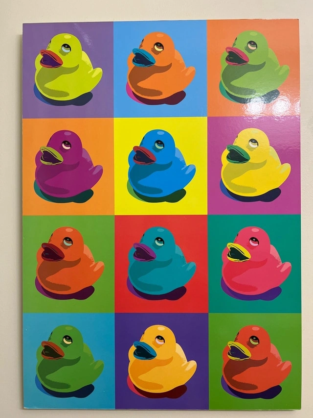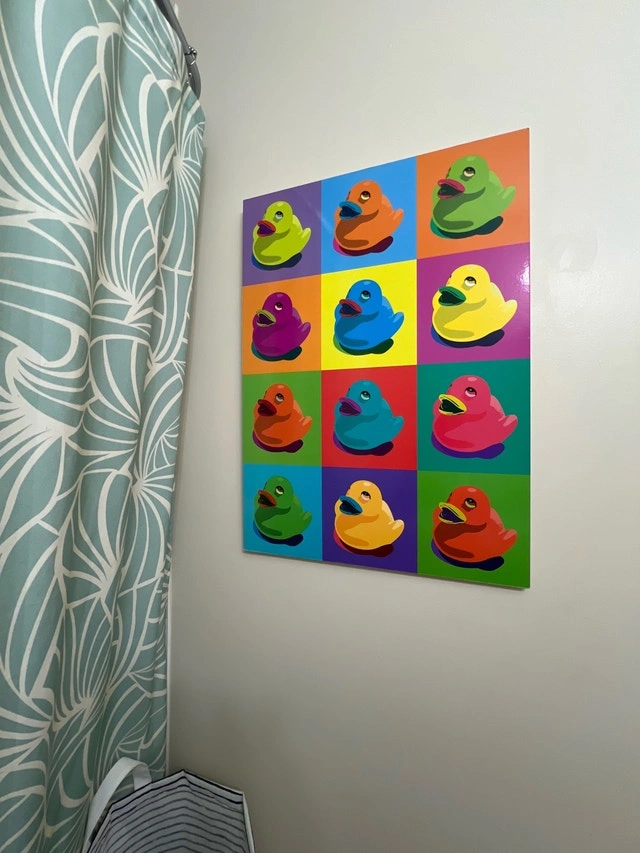 Add a splash of colour to your space with this fun canvas art, showcasing a vibrant array of rubber ducks in a pop art style. This piece will bring a playful and modern touch to any room, and is sure to catch the eye. I'm not an art critic, but I think this piece is duck-tastic! If you're seeing this ad, quack, because it's still available! Cash accepted.