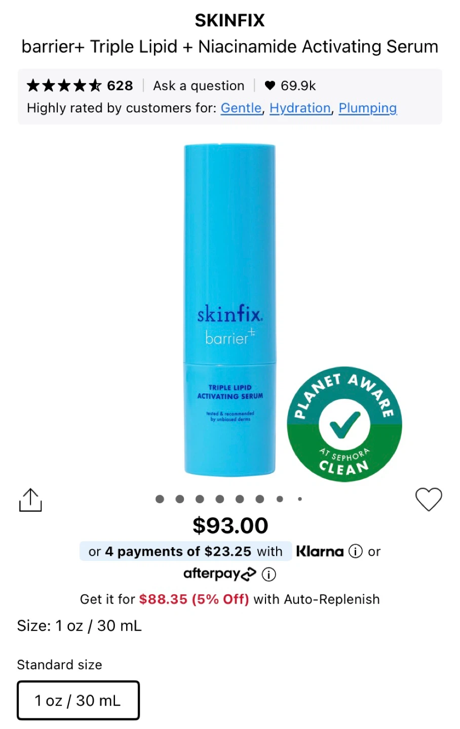 Selling a Skinfix Barrier+ Triple Lipid + Collagen Activating Serum! This serum activator contains triple lipids and collagen. It comes in a 30 ml / 1.0 fl oz size.