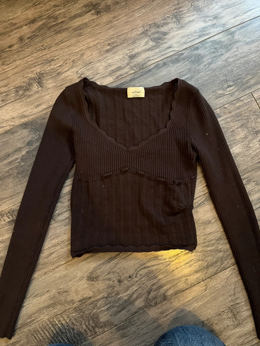 Buy & SellWilfred Brown Knit Sweater - XSWilfred Brown Knit Sweater - XS$15This is a Wilfred brown knit sweater. It's a size xs. It’s not damaged, stained, or worn out. Comes from a smoke free and pet free homeBrandWilfredWHERE TO MEETCheck LocationView MapSELLERverifiedSofiaStouffville1379 reviews0 chats·1 favorites·19 viewsSEND CHAT TO SELLERHi Sofia! I’m interested in your listing.Hi Sofia! I’m interested in your listing.Get the Karrot app to chatSign In to chat