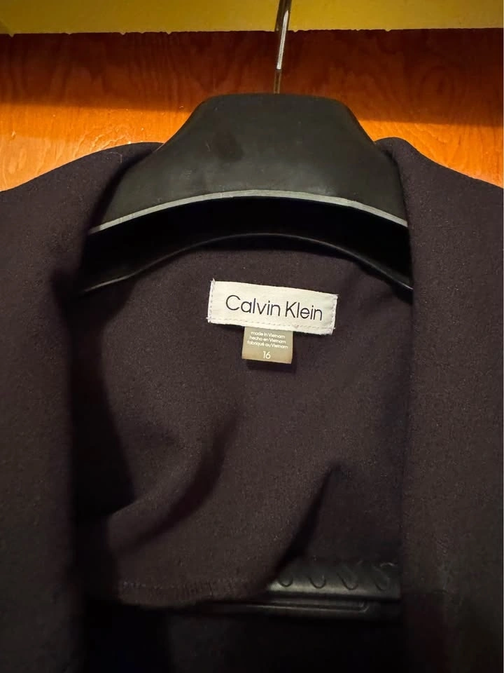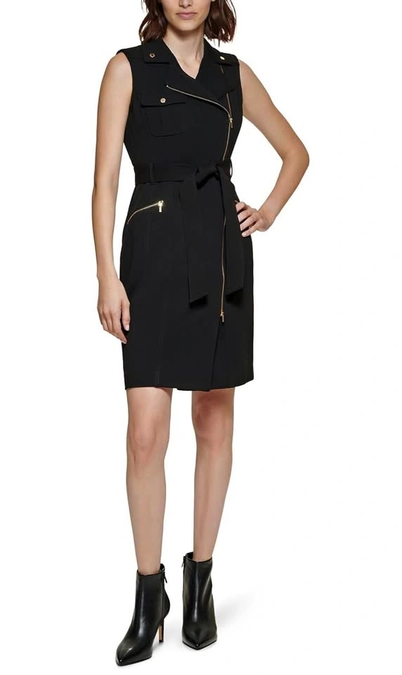 Chic sleeveless trench-style dress from Calvin Klein with gold zippers, waist tie, and a flattering structured fit. Brand new with tags, never worn. Perfect for work, date nights, or layering for fall. From a smoke-free home. Asking $120 OBO. Pickup in Windsor.