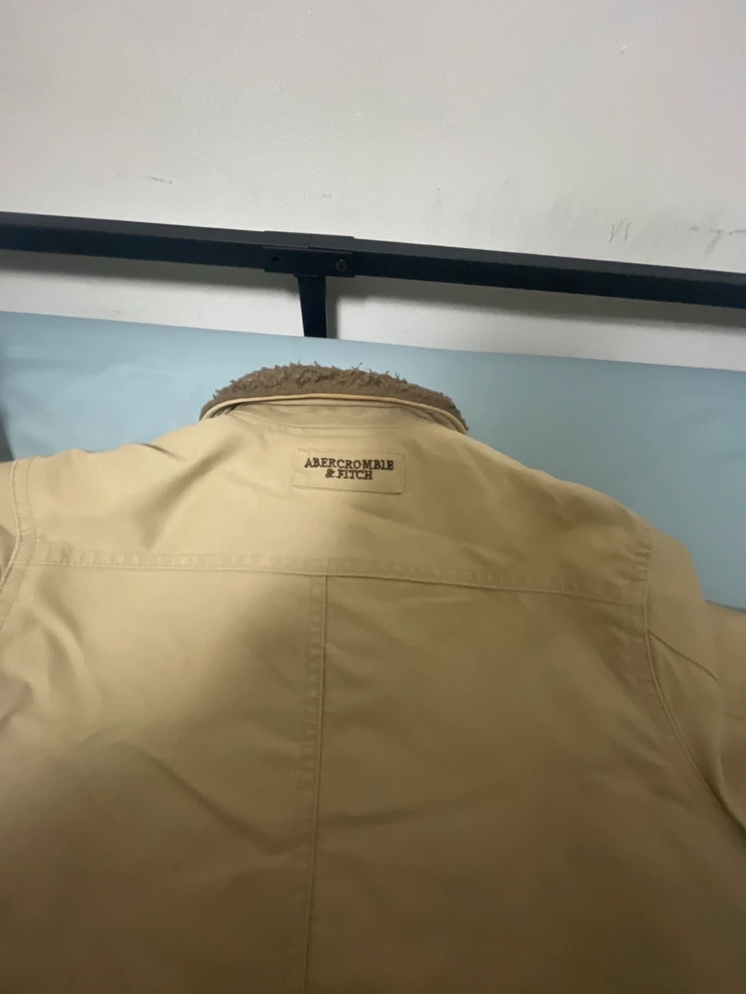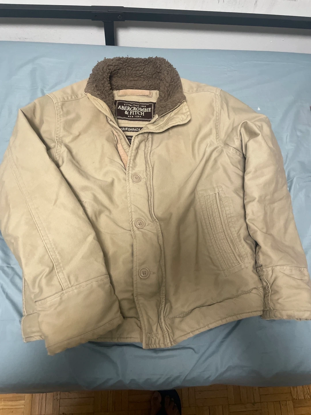 Warm Abercrombie & Fitch jacket with a Sherpa lining. It's a size medium. This jacket features a zip and button closure.