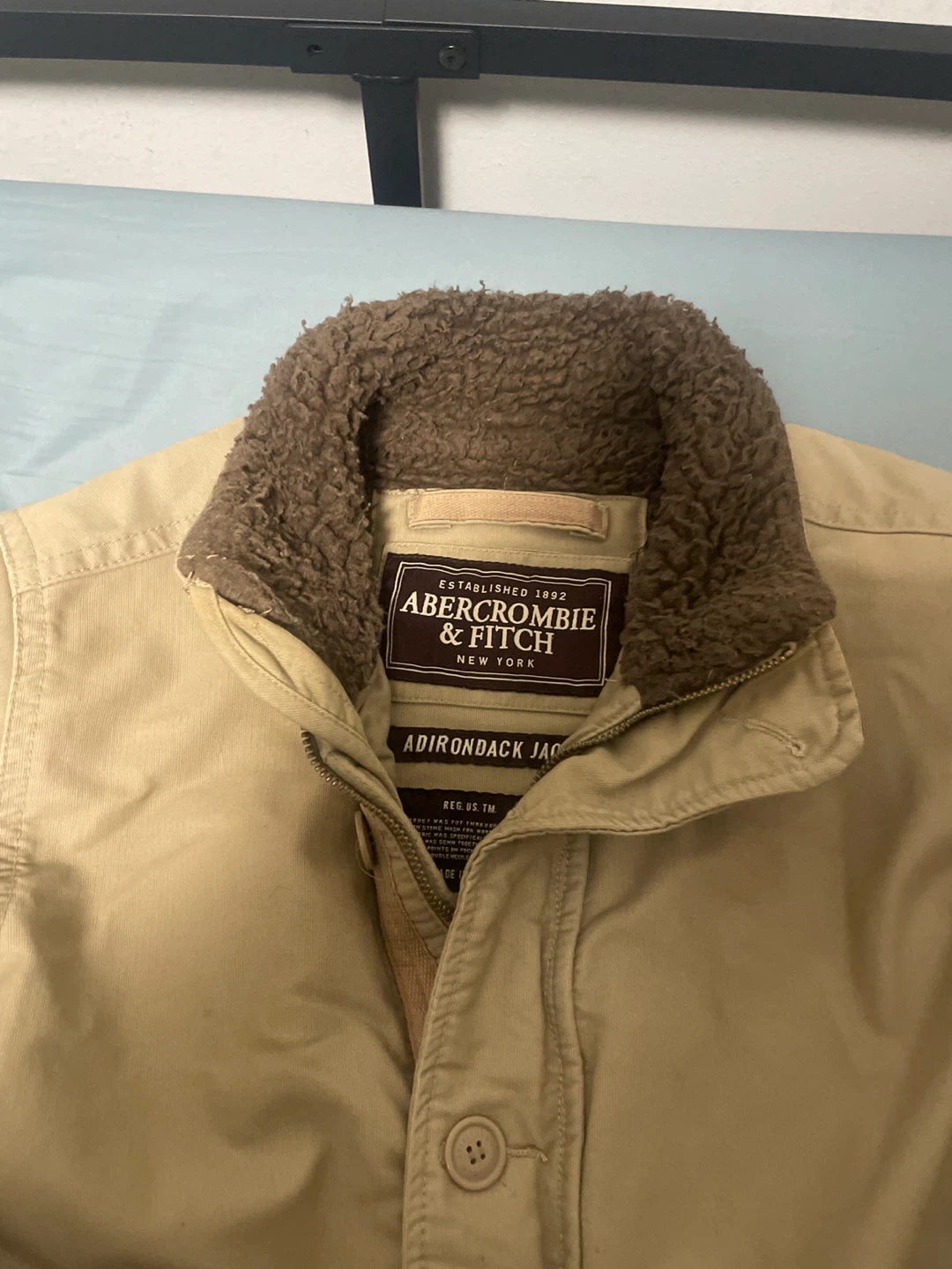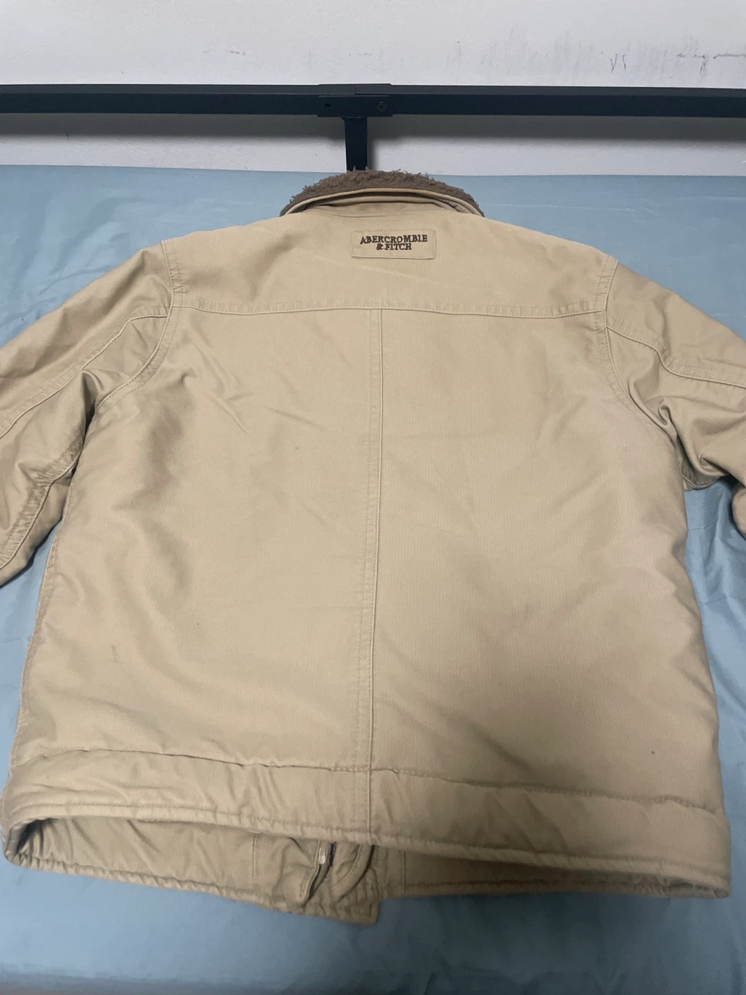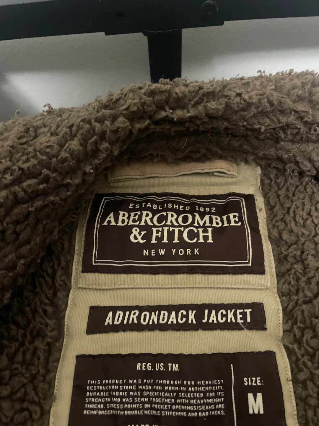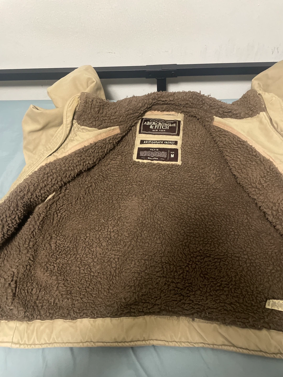 Warm Abercrombie & Fitch jacket with a Sherpa lining. It's a size medium. This jacket features a zip and button closure.