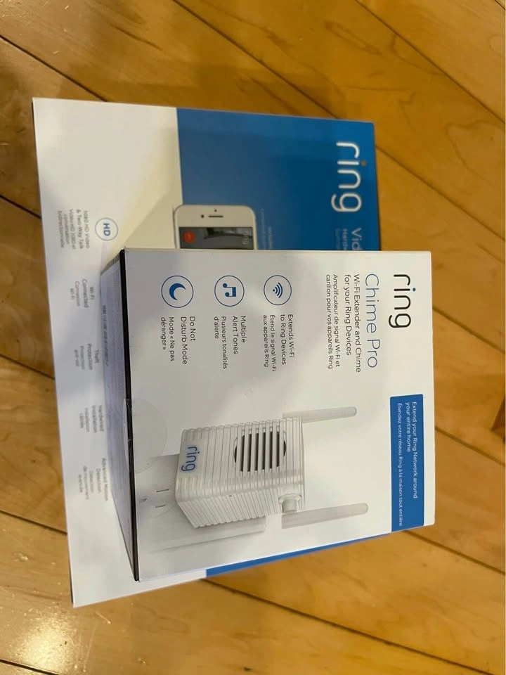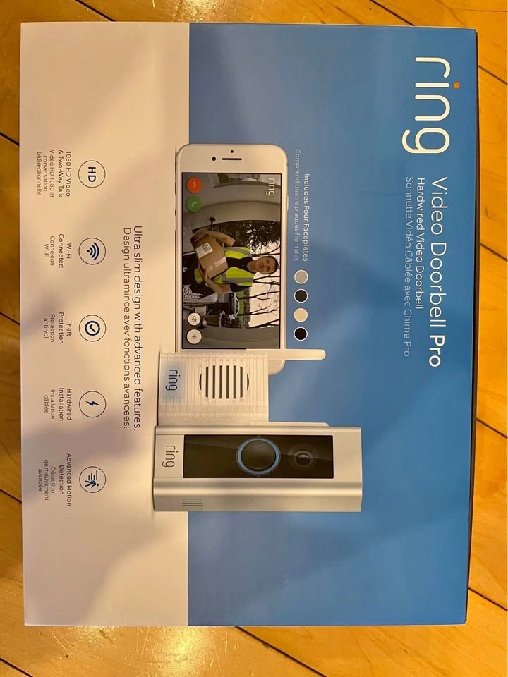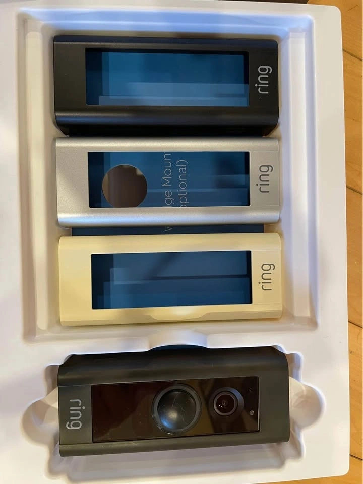Ring video doorbell pro with power pro 2 and chime. Power pro 2 used for existing chimes in order to use it for doorbell rings. Chime used to add on ring functionality to areas where you might not hear it. Camera comes with the full kit, all installation items like screwdriver, screws, power pro kit, 4 face plates in different colors and the unit itself. Works great and without issues. This is wired and not battery operated to work with existing doorbell wiring.