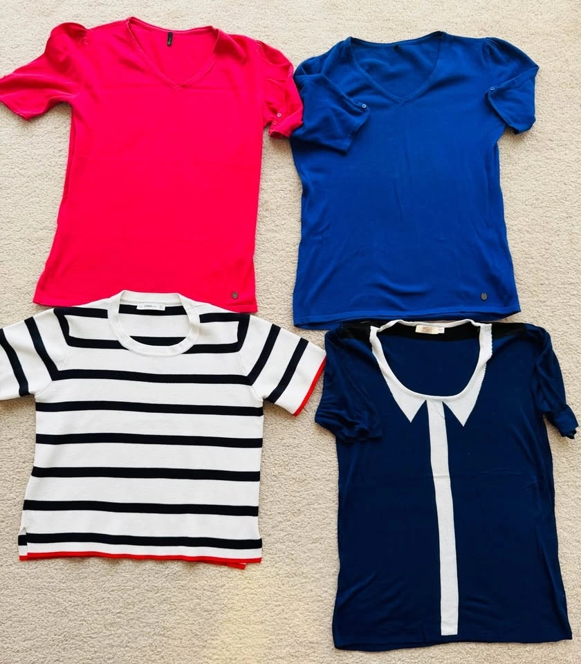 6 women tops in excellent condition, renowned brands, fits Medium/large depends on body type, perfect for layering. Price: $5 each or $25 for all. Discount on bundle purchase. Pick up from Downtown Calgary.