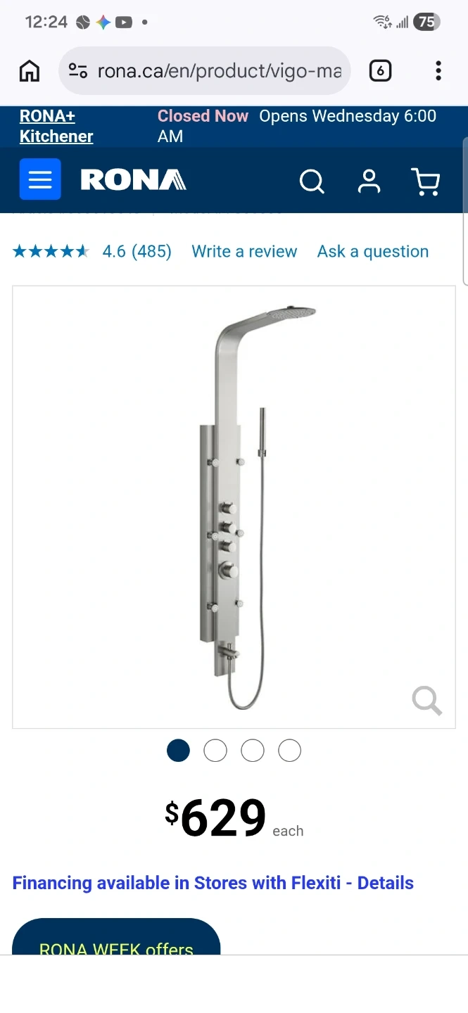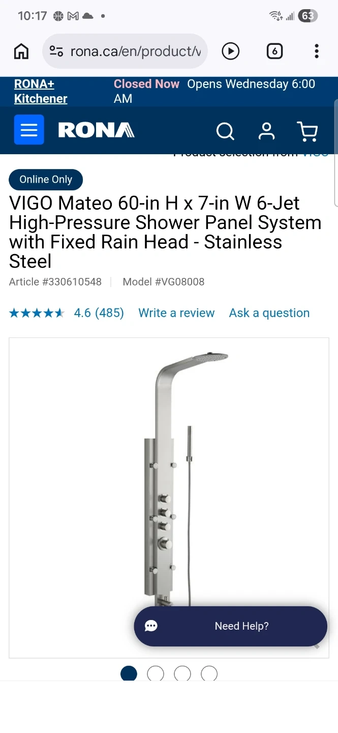 VIGO Mateo shower panel system with a 60-inch height and 7-inch width. Features a 6-jet high-pressure system and a fixed rain head. Made from stainless steel. This panel offers a luxurious shower experience. Used as a display unit