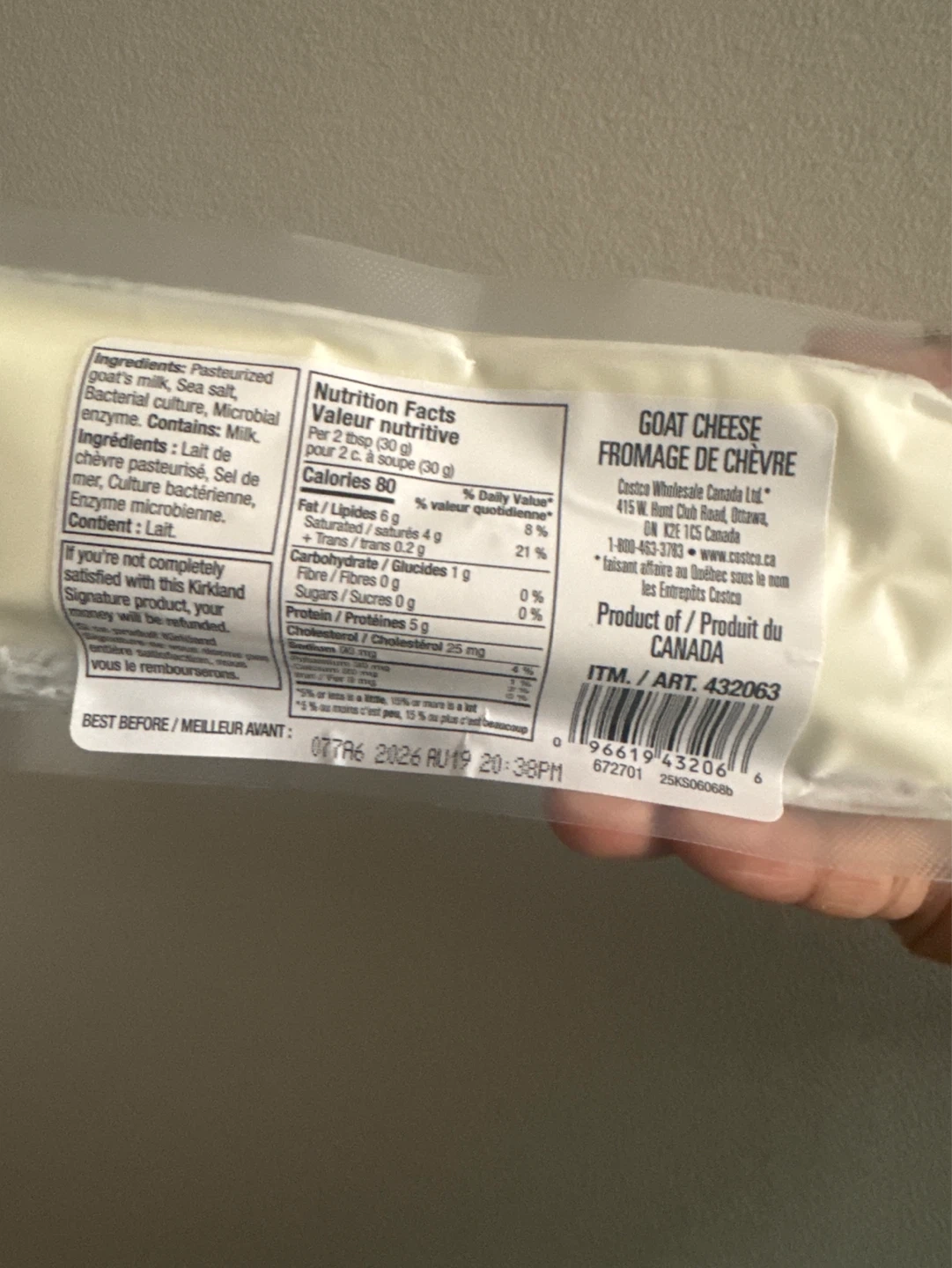 Buy & SellKirkland Soft Unripened Goat Cheese 300gKirkland Soft Unripened Goat Cheese 300g$3Kirkland brand soft, unripened goat cheese. It's a 300g log. Unopened. I don’t like the taste. Expiry Aug 19/2026ConditionNewWHERE TO MEETNorth York centreView MapSELLERverifiedArshFinch86792 reviews0 chats·0 favorites·13 viewsSEND CHAT TO SELLERHi Arsh! I’m interested in your listing.Hi Arsh! I’m interested in your listing.Get the Karrot app to chatSign In to chat
