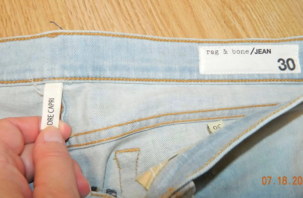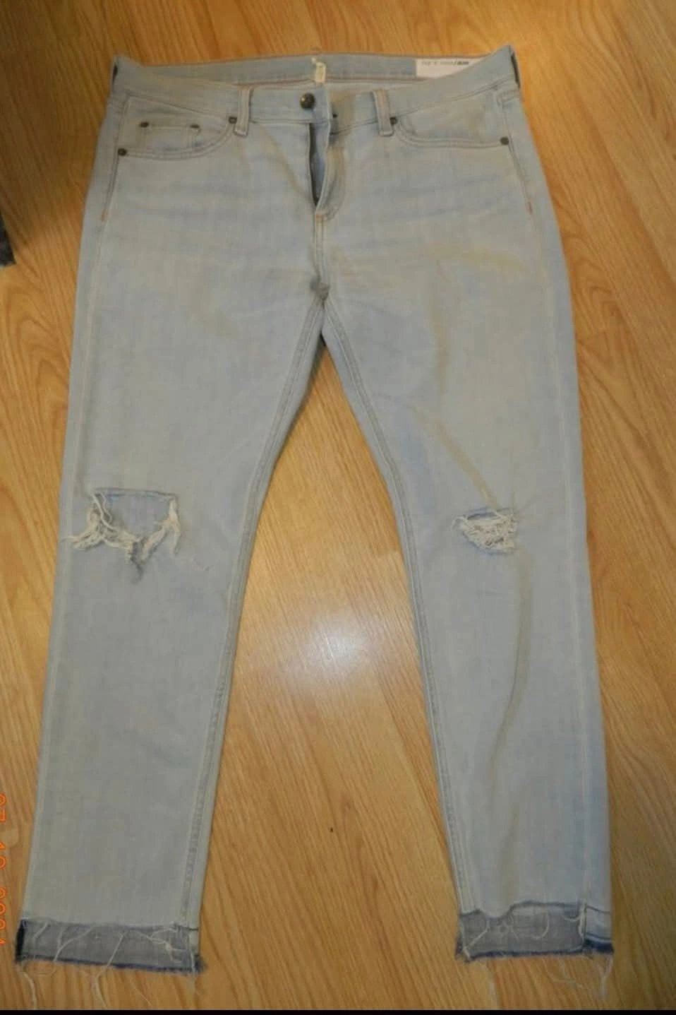 Selling a pair of Rag & Bone Dre Capri jeans in size 30. They're in great condition and have a stylish, slightly distressed look. Perfect for a casual, comfortable fit!