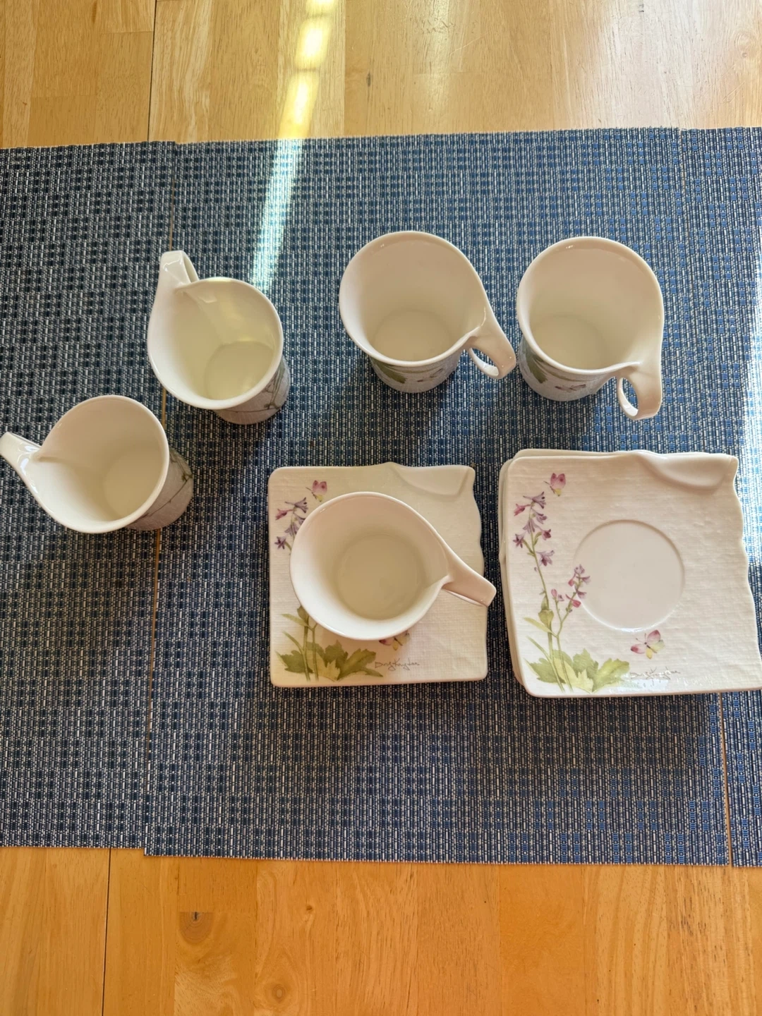 Selling a bone china porcelain cup and saucer set! The set features a delicate floral design on a creamy white background. Perfect for adding a touch of elegance to your tea or coffee time