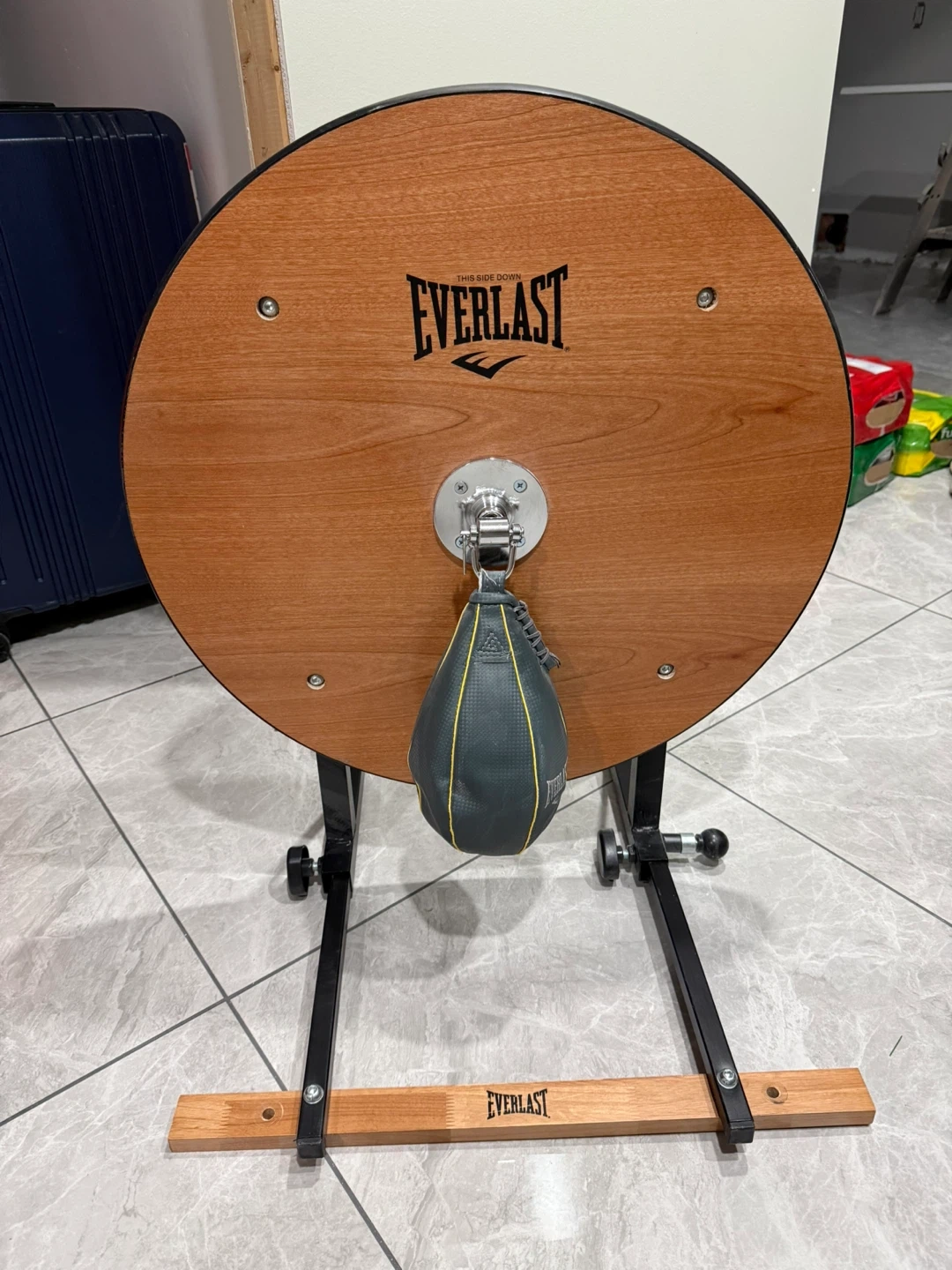This is an Everlast speed bag platform. It has a wooden board and a metal frame. Includes the speed bag. Excellent sturdy construction for mounting. Barely used.