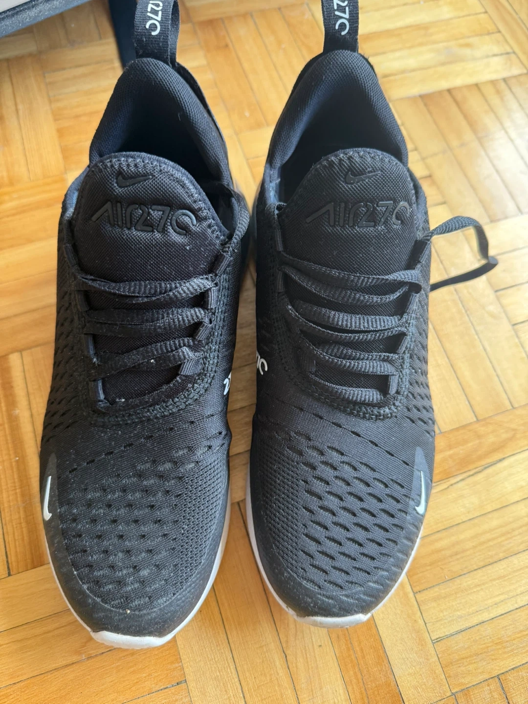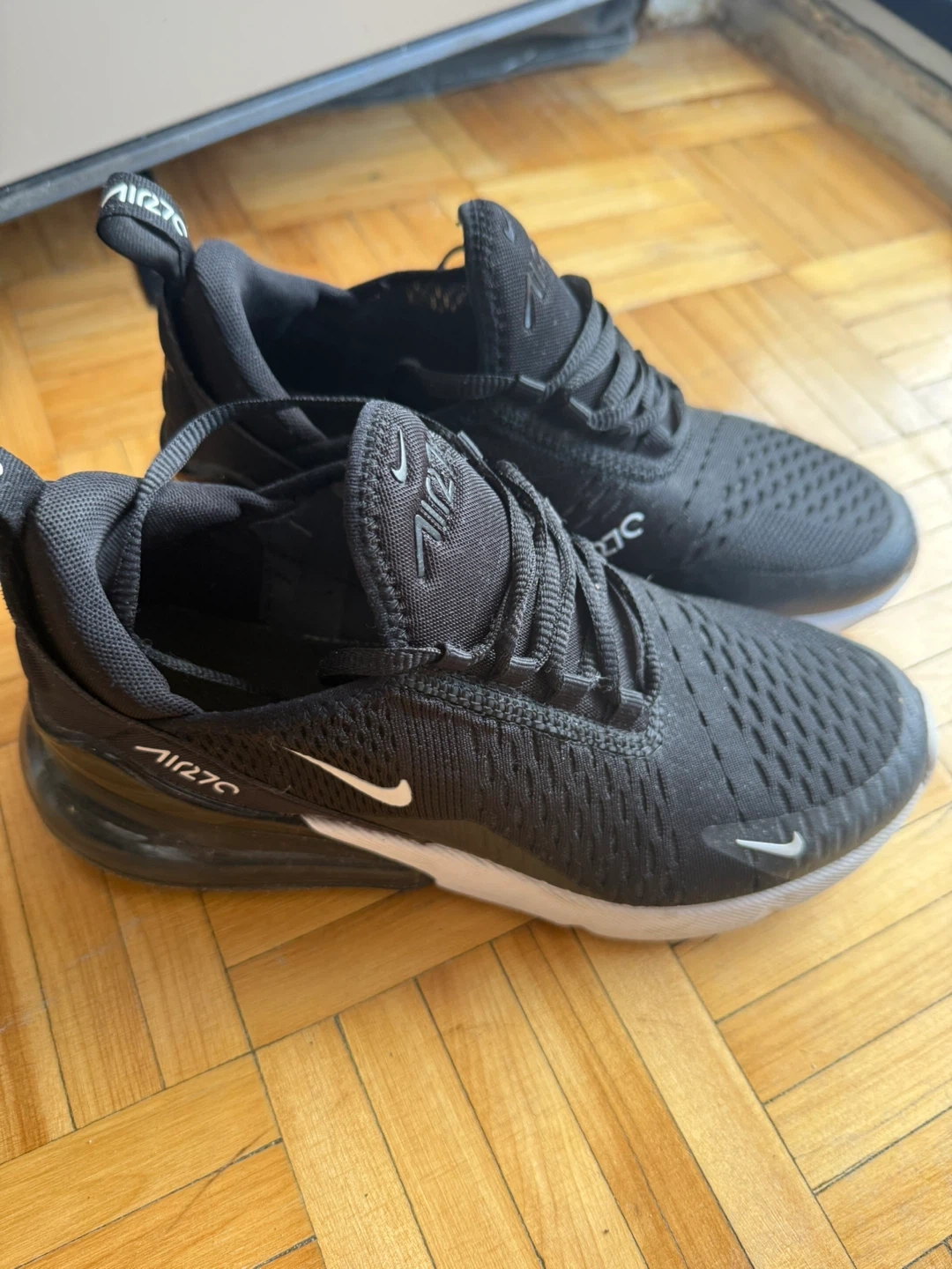 Selling a pair of Nike Air Max 270 sneakers in black. They're in great shape and ready for a new home! Perfect for everyday wear or hitting the gym