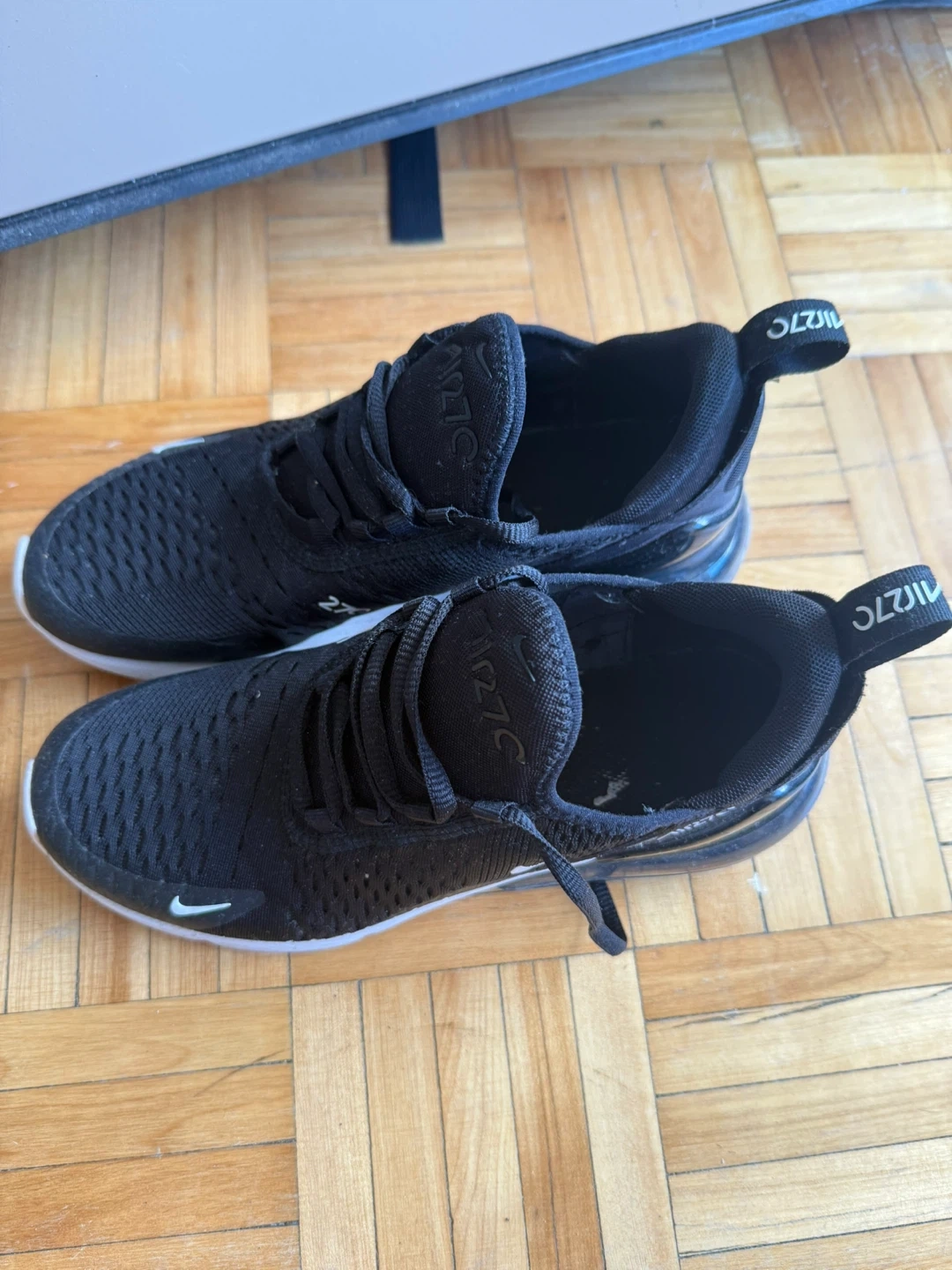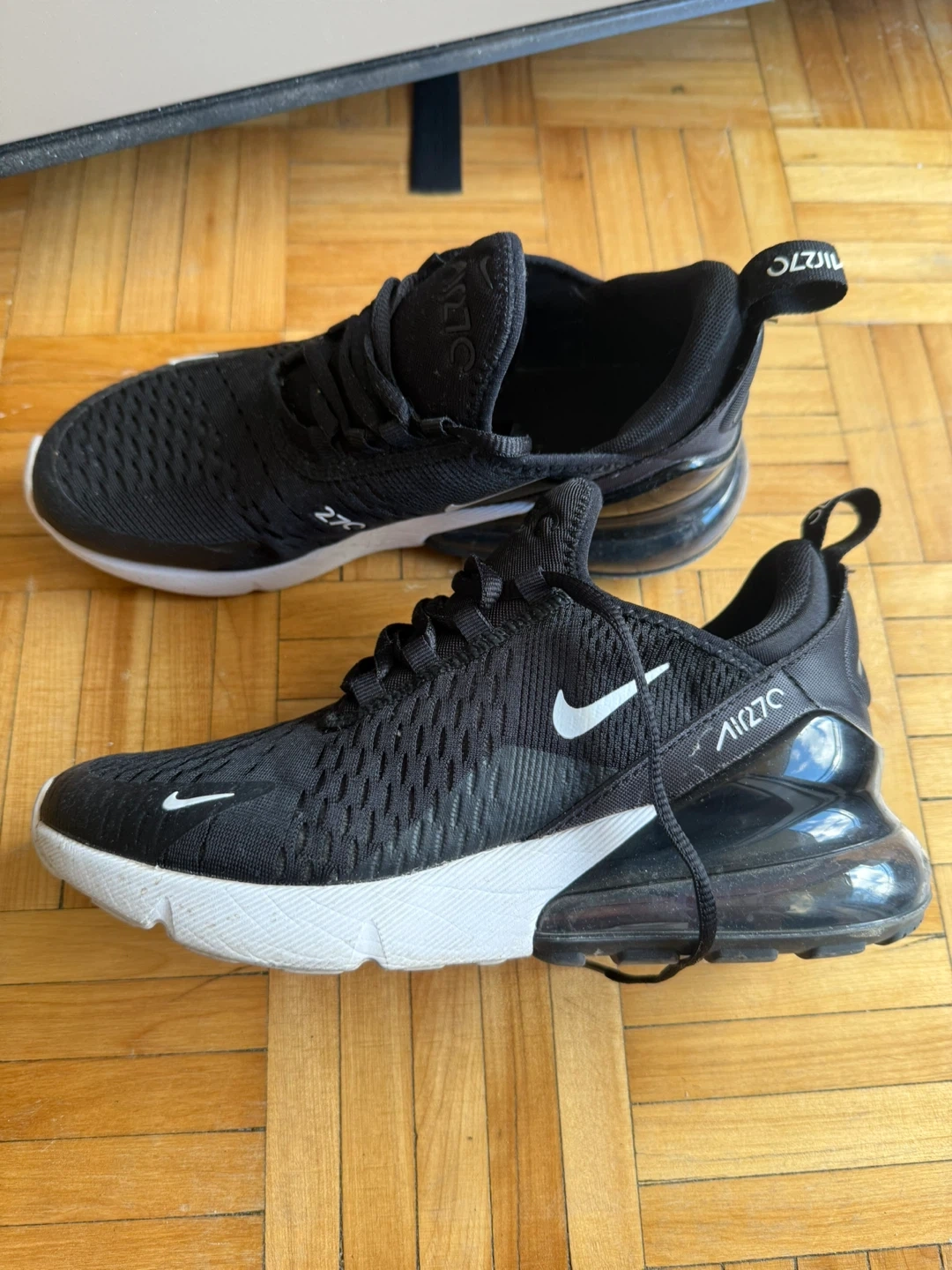 Selling a pair of Nike Air Max 270 sneakers in black. They're in great shape and ready for a new home! Perfect for everyday wear or hitting the gym