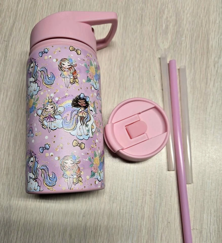 Princess Thermos water bottle set for kids (14oz, pink color)