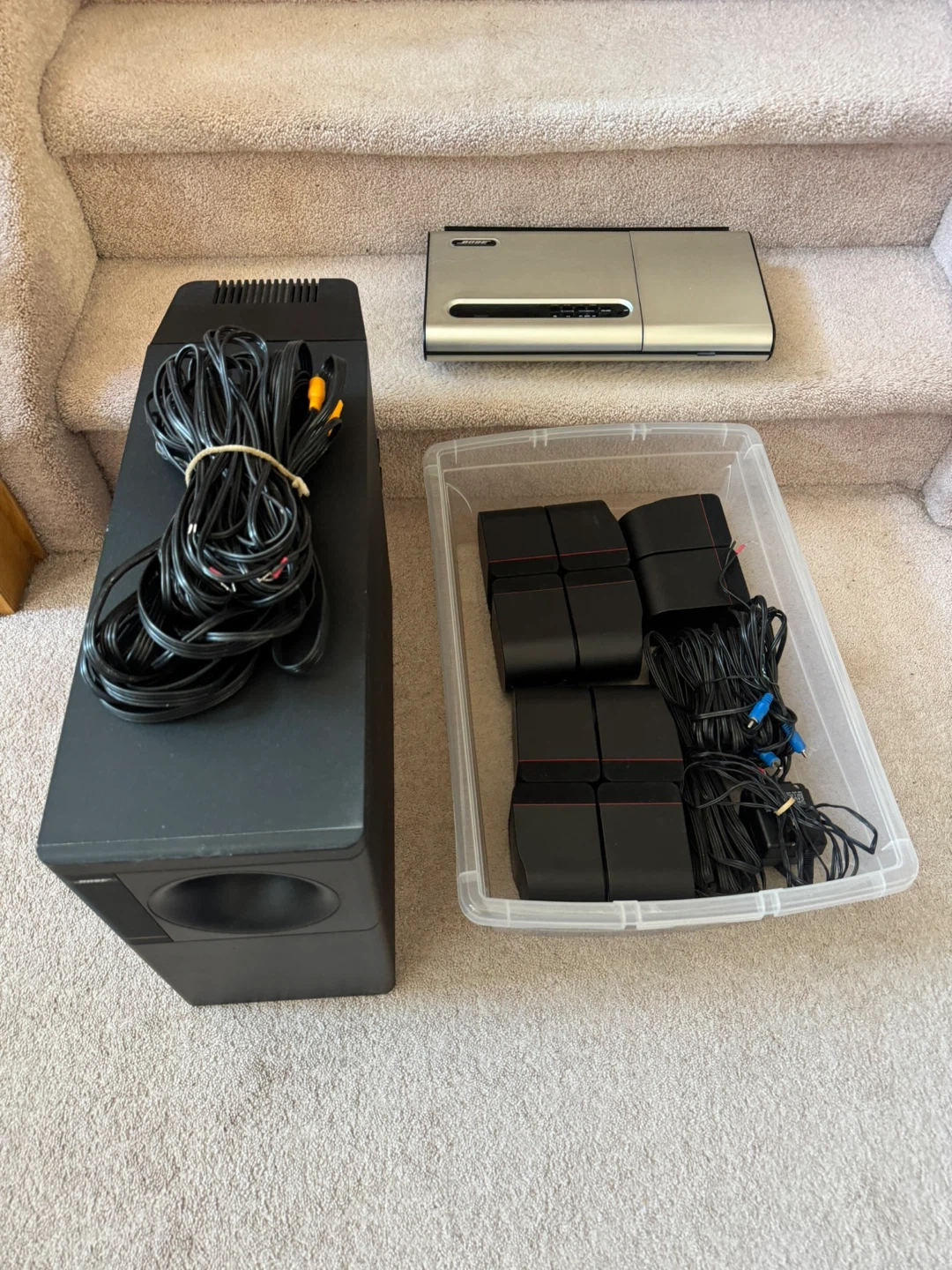 This Bose Acoustimass 5 Series III speaker system comes with the control unit and all satellite speakers. It's a black system that includes all necessary wiring. This system is great for upgrading your home audio experience!