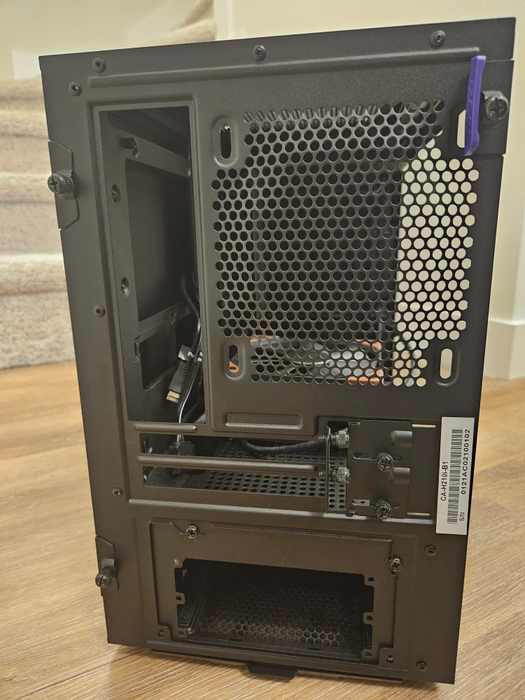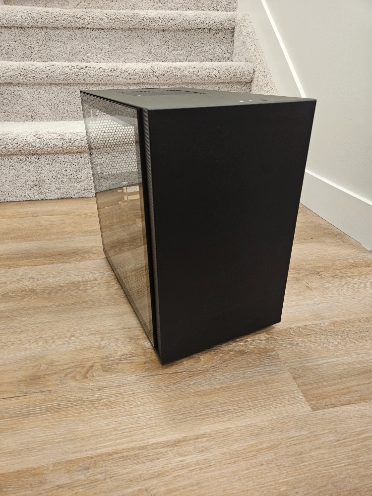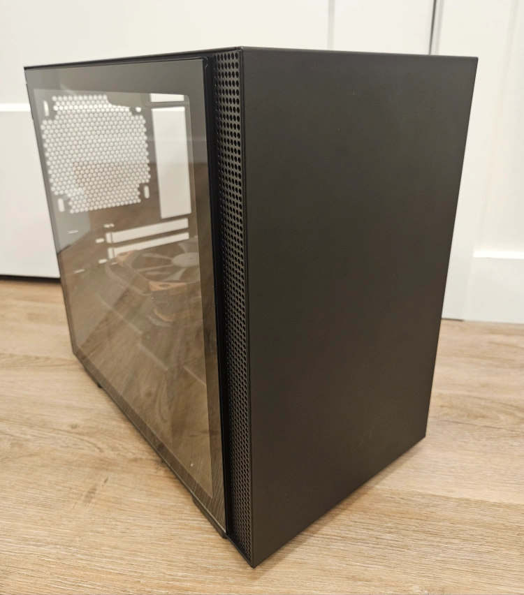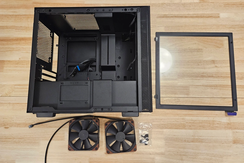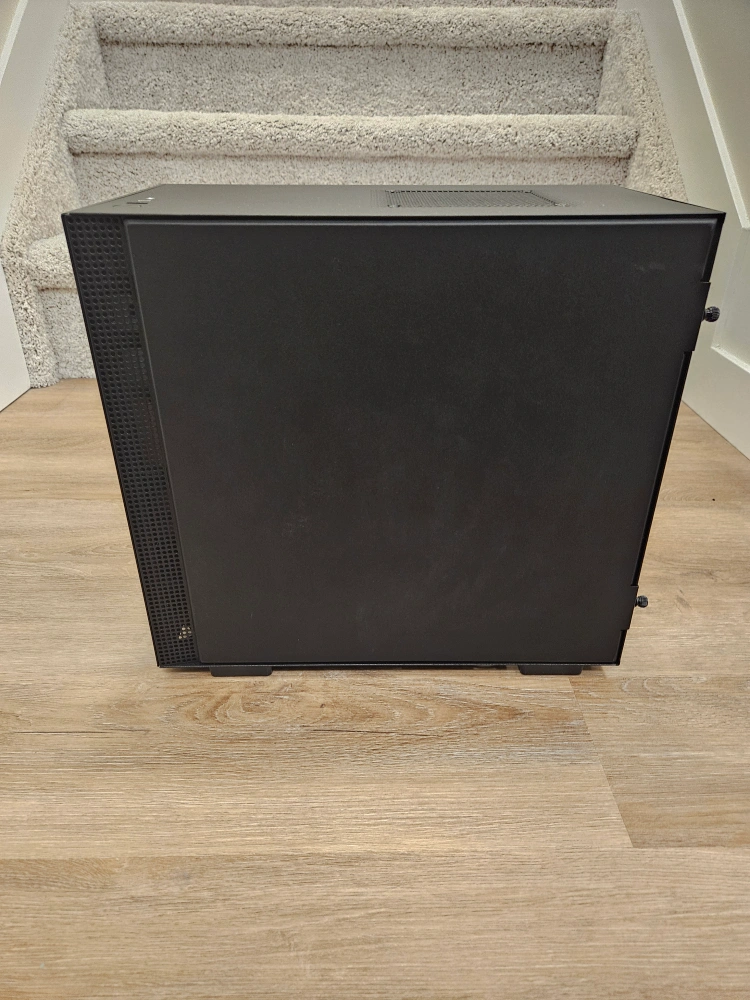 80Black mini ITX computer case. Hardly used. Tempered glass side panel. I no longer have the original case fans, instead it includes 2 120mm Noctua fans (NF-F12, Black)