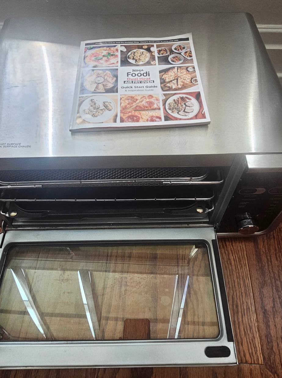 Selling my Ninja Foodi Dual Heat Air Fry Oven! Includes a black baking pan, a wire rack, and a mesh baske. This versatile appliance is perfect for saving space – it flips up for easy storage when not in use. It’s great for air frying, baking, broiling, and more. While it's used, it’s still in great condition. Ideal for anyone looking to maximize kitchen space without sacrificing functionality.