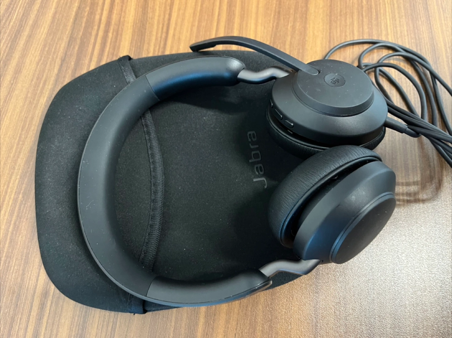 Selling a Jabra Evolve2 40 MS wired headset in black. It's in great condition and comes with its carrying case. Perfect for work or gaming!