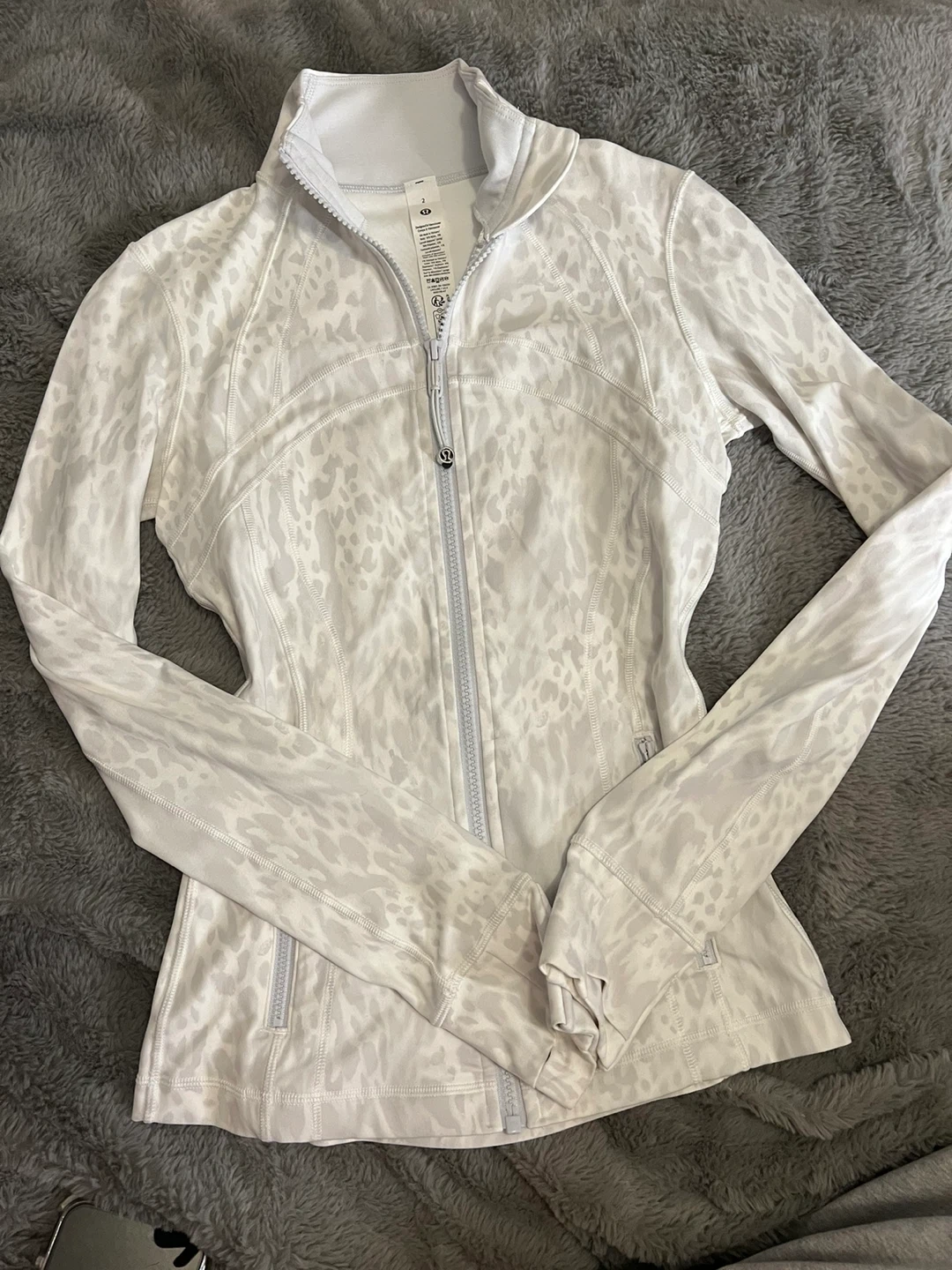 White and grey cheetah print Define Jacket. Bought a couple months ago and literally wore it once!!! Size 2 (women’s)…