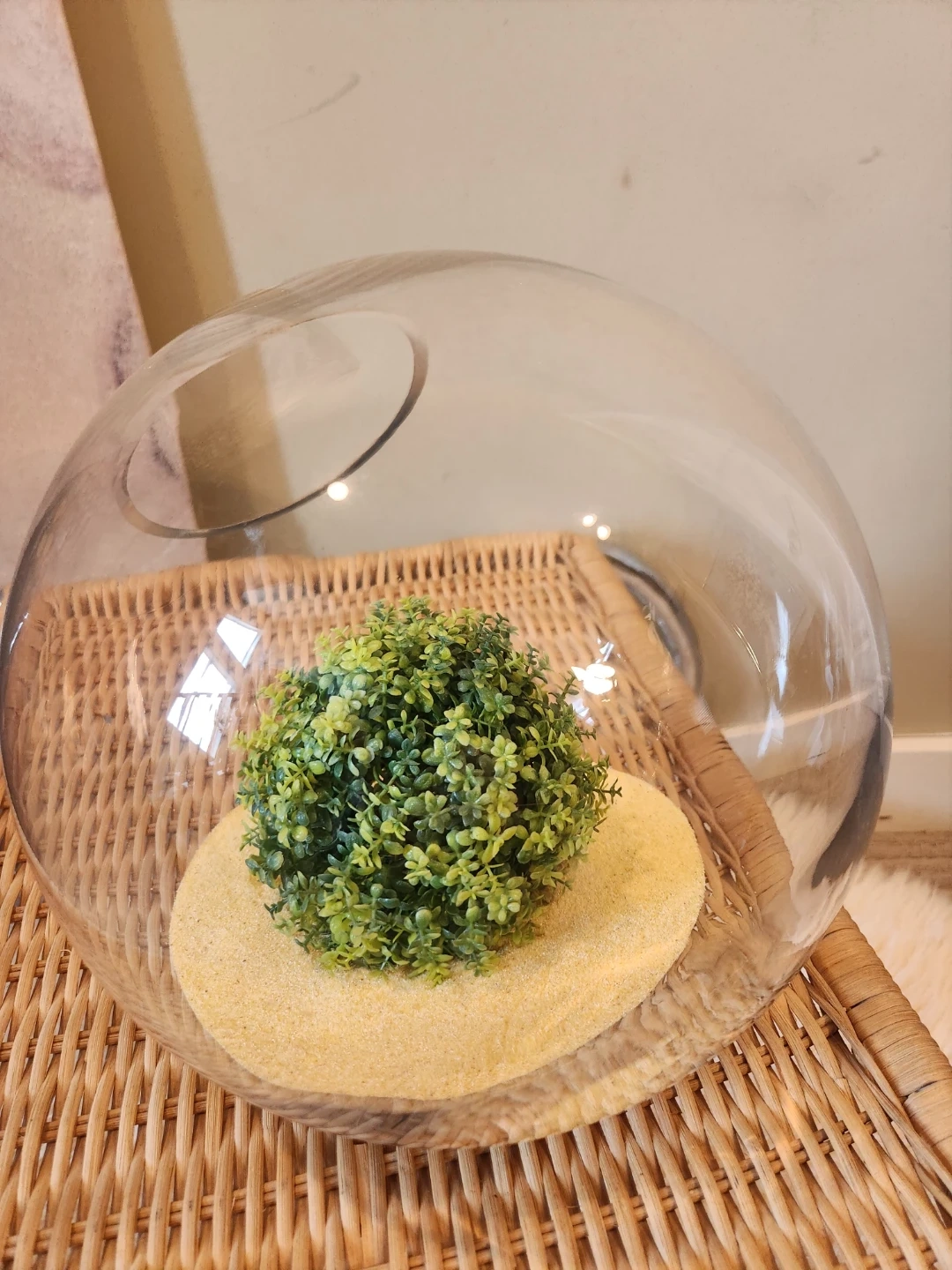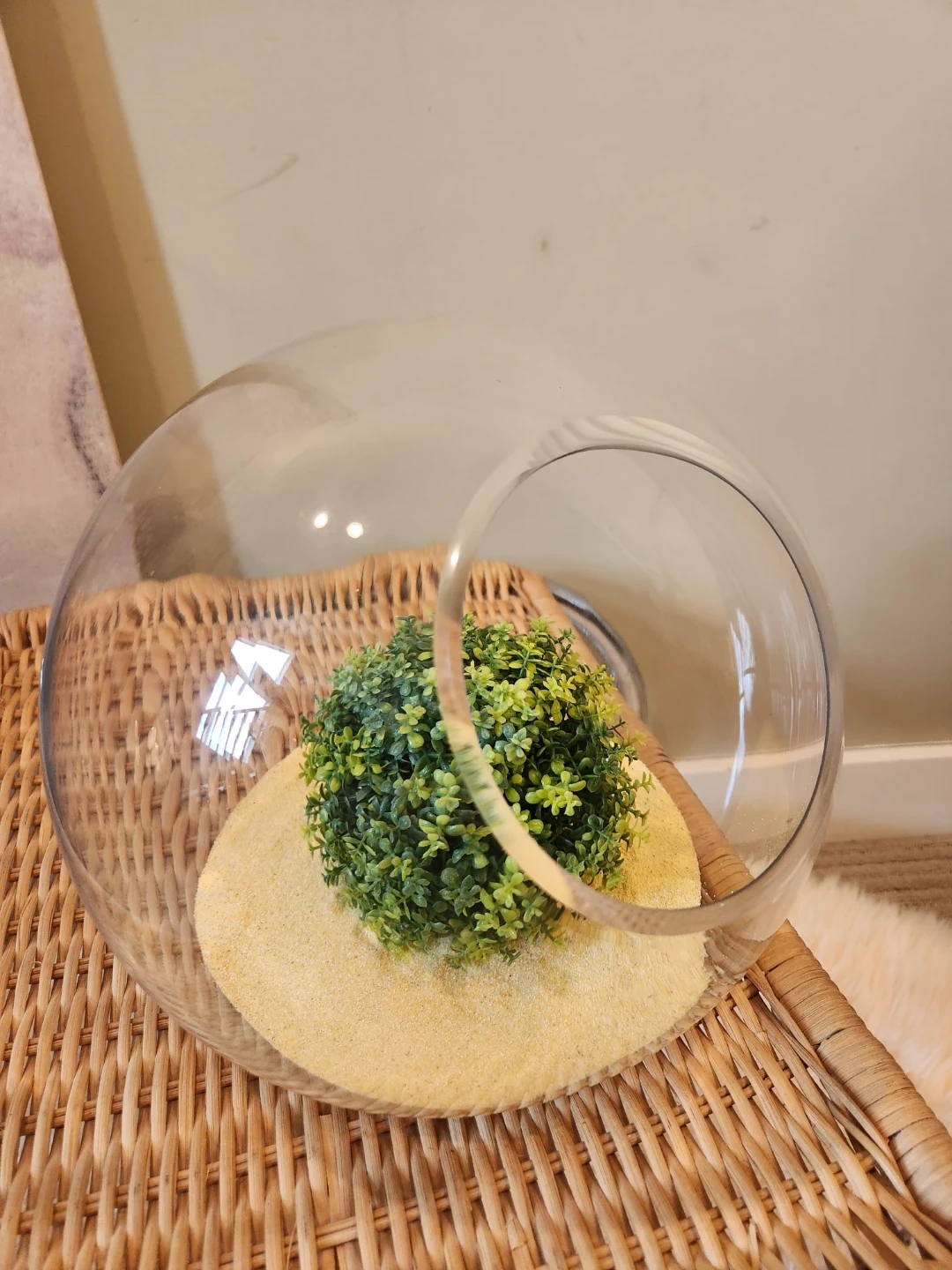 This NEW clear glass plant terrarium is a neat decorative piece for any space! This 11 inch diameter, flat bottomed glass terrarium is zen garden ready! Decorate with sand, glass beads, rocks and plants.....OR is it the perfect fish bowl!
