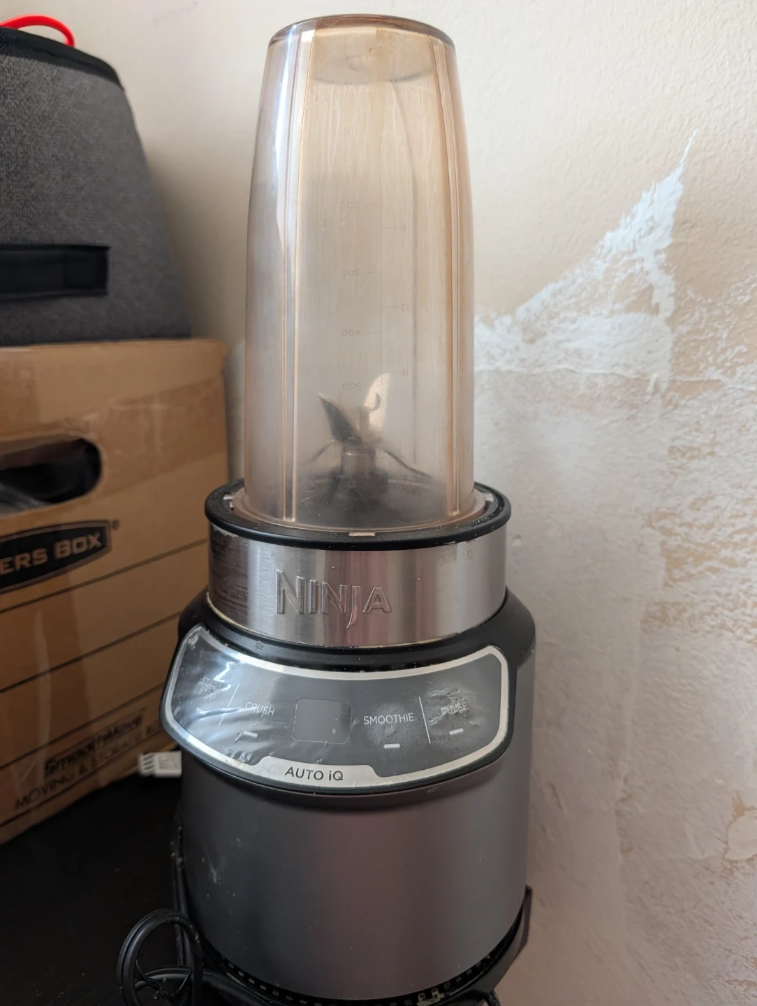 This Ninja blender features Auto-IQ technology for smart blending programs. It has settings for crush, smoothie, and pulse. The unit comes with a blade assembly and a blending cup.