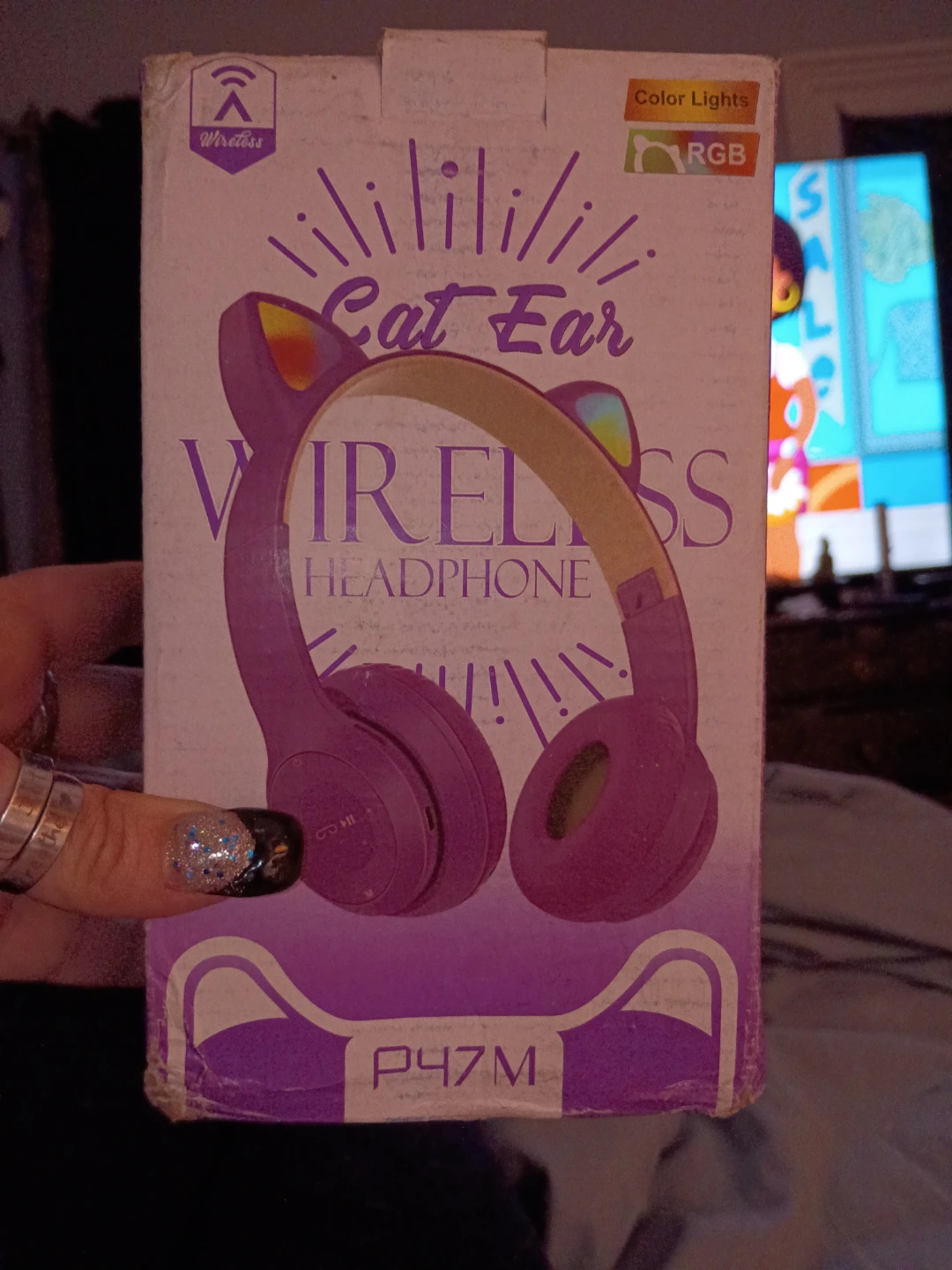Selling a brand new pair of purple cat ear wireless headphones! They come in the original box and feature RGB colour lights. Model number P47M pick up only