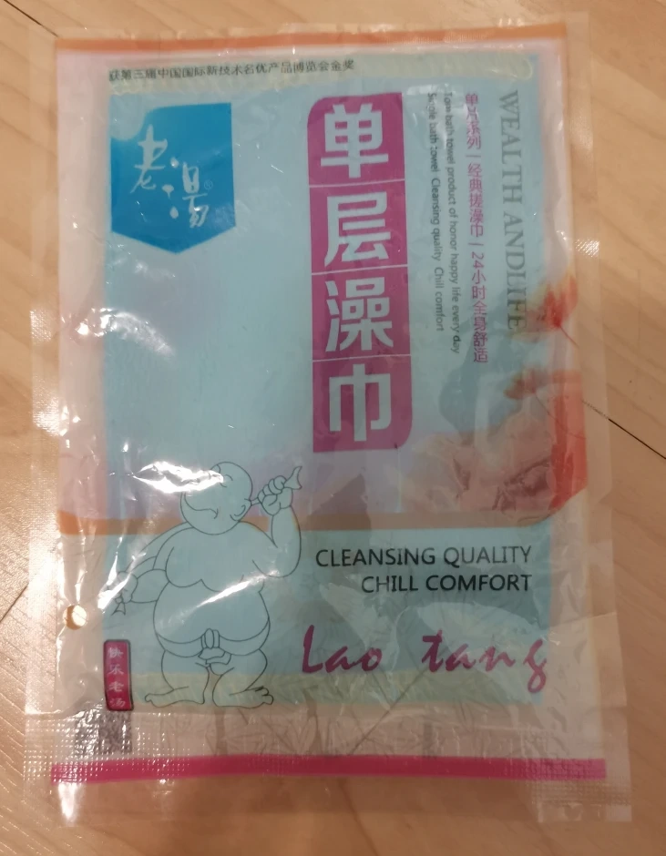 This is a single bath towel from Lao Tang. It's designed for cleansing quality and offers chill comfort. The towel is a product of honor, aiming for a happy life every day.