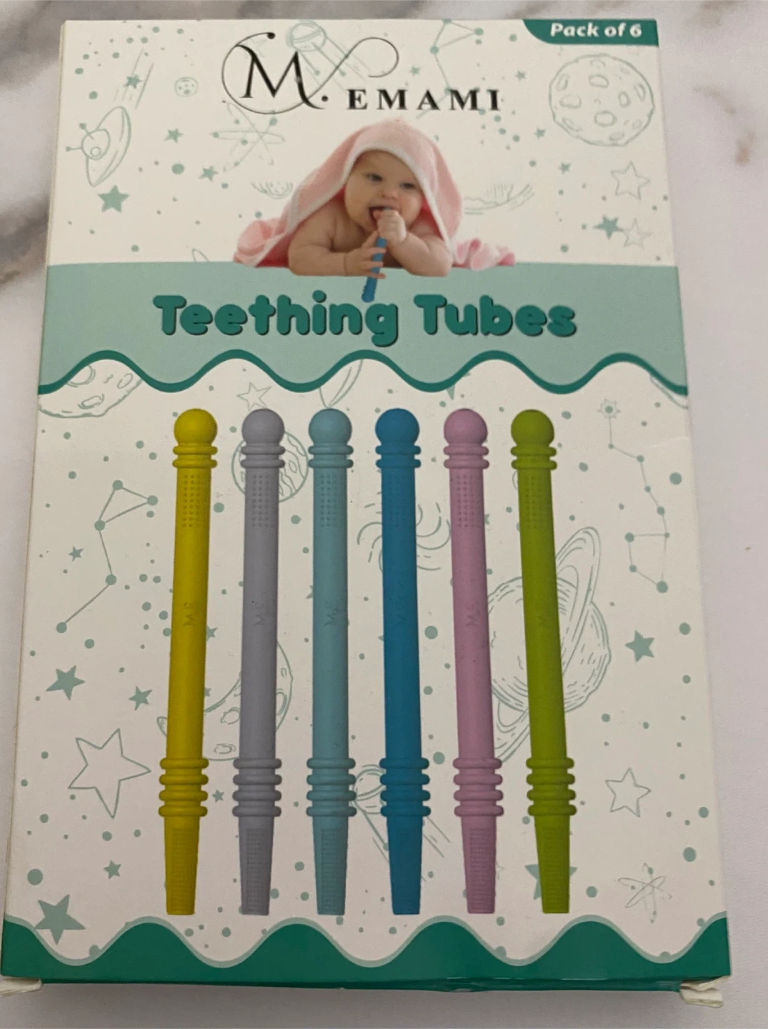 Selling a pack of 6 M. Emami teething tubes! These are great for little ones who are starting to teethe. They come in a variety of colours.