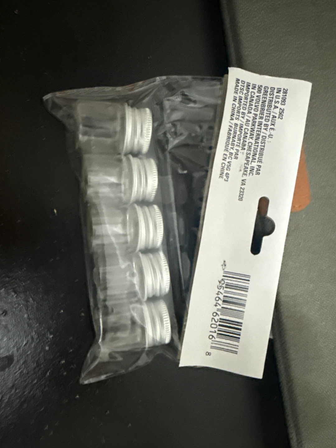 This is a pack of 5 mini glass containers with silver screw-on caps. Each container holds 0.16 fl. oz. (5 mL). They're great for storing small amounts of liquids, craft supplies, or spices. Useful for organizing tiny items or for travel-sized portions!