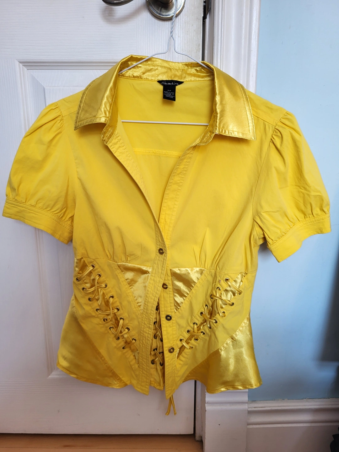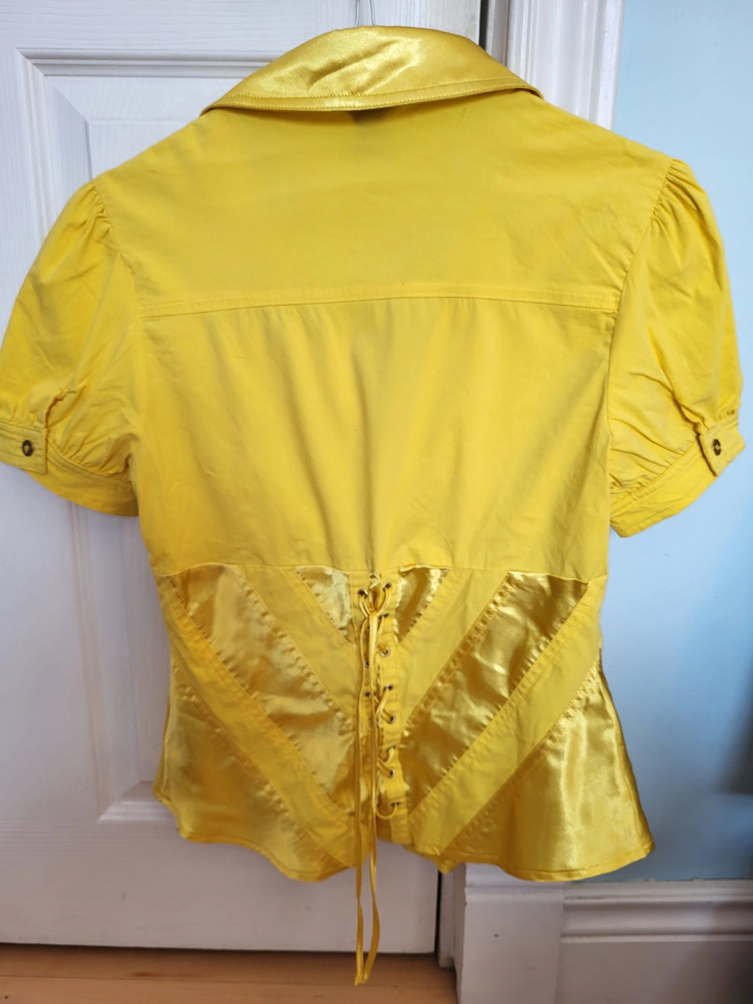 Buy & SellCute Yellow Blouse 🧡Cute Yellow Blouse 🧡$10Short sleeve collared blouse. Yellow cotton with satin detail. Lace-up corset style back.🧡 ConditionLike newSizeSmall WHERE TO MEETCheck LocationView MapSELLERverifiedKarenDanforth E York1084 reviews0 chats·0 favorites·20 viewsSEND CHAT TO SELLERHi Karen! I’m interested in your listing.Hi Karen! I’m interested in your listing.Get the Karrot app to chatSign In to chat