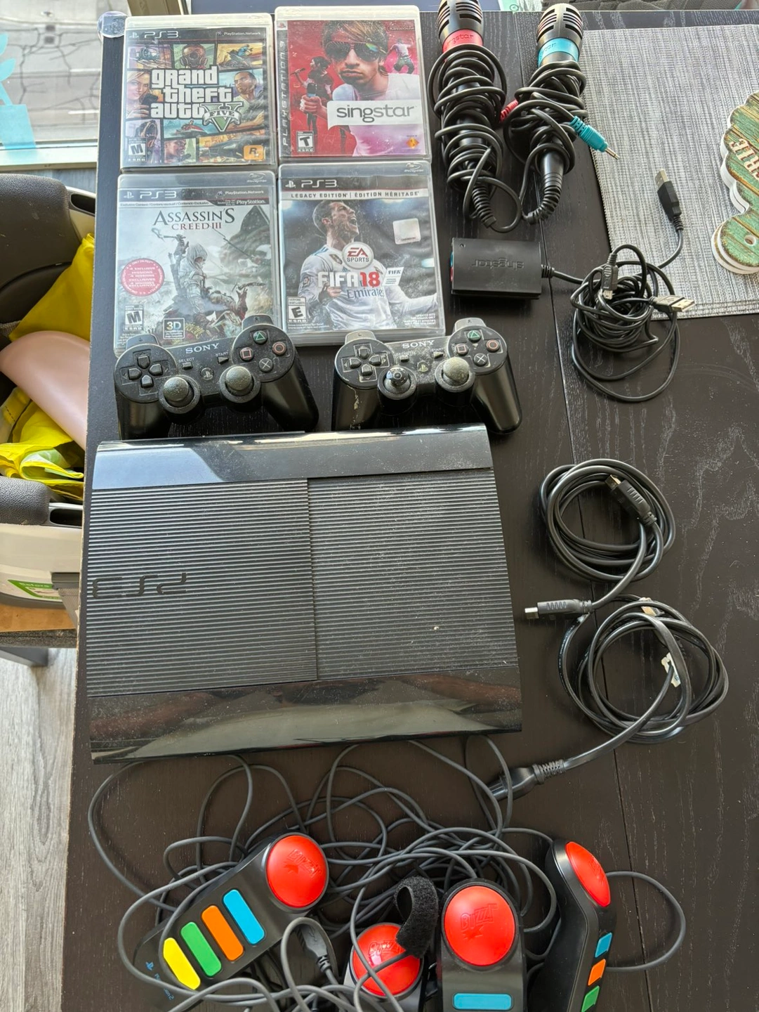 - 4 games: Grand Theft Auto V, Assassin’s Creed III, FIFA 18, and SingStar