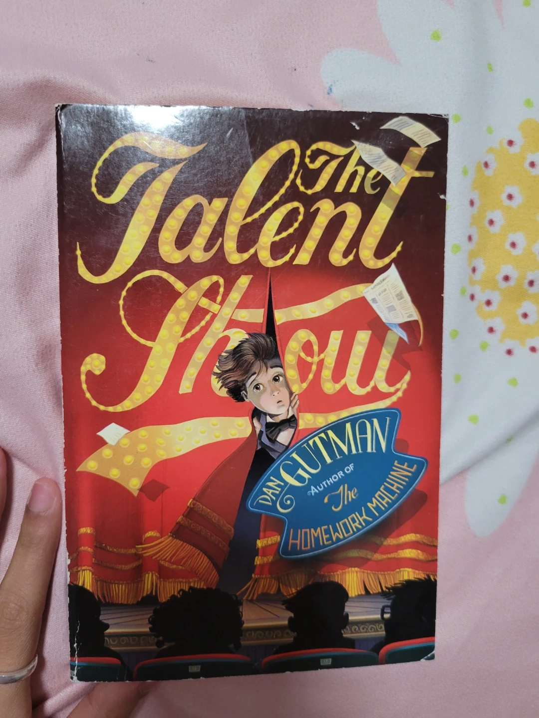 This paperback book is titled 'The Talent Show' by Dan Gutman. It's part of a series for young readers. The recommended age is 8-12.