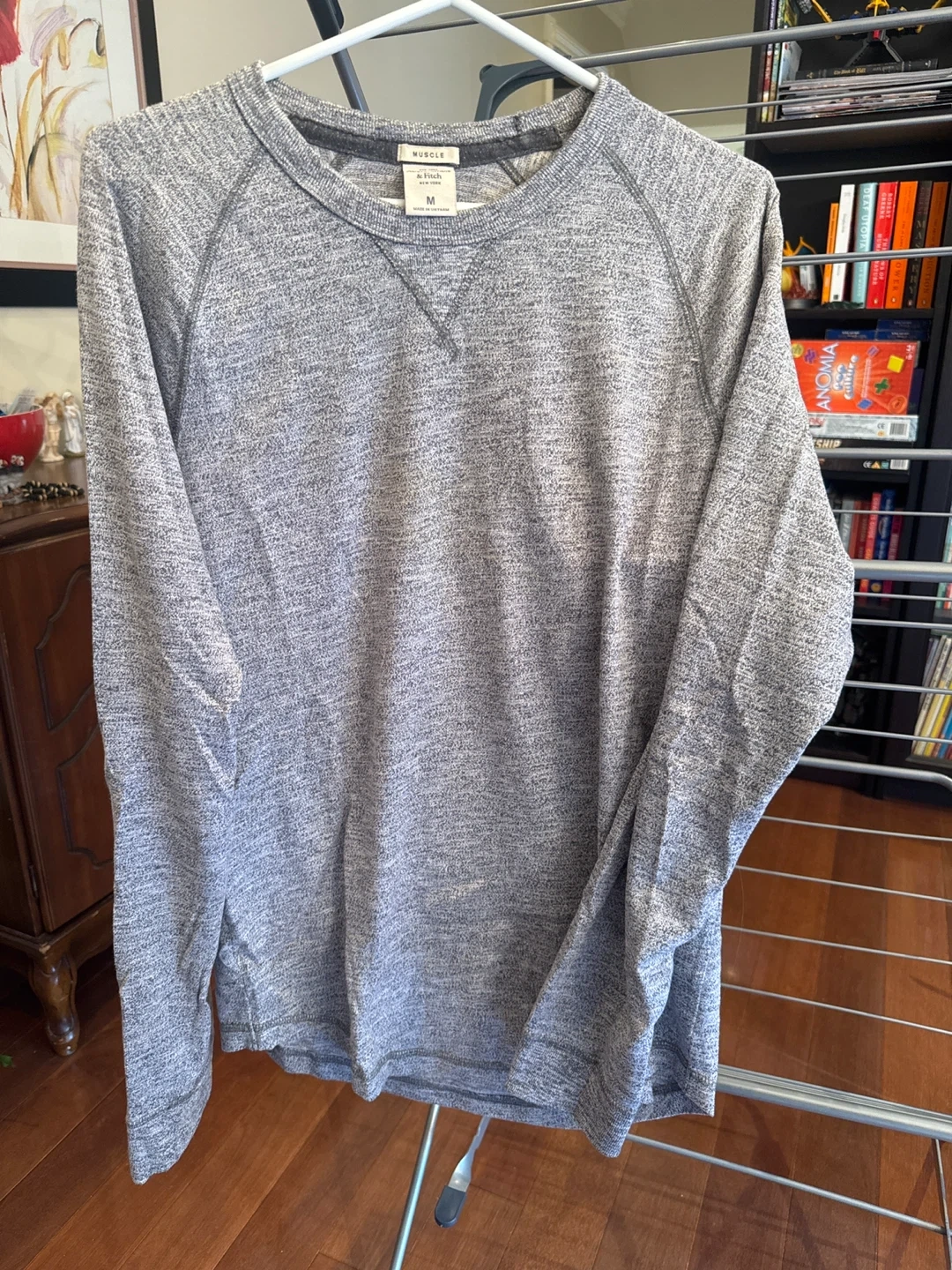 This is a grey marled long sleeve crewneck sweater from Abercrombie & Fitch. It's a size medium. Made with a comfortable fabric blend for everyday wear.