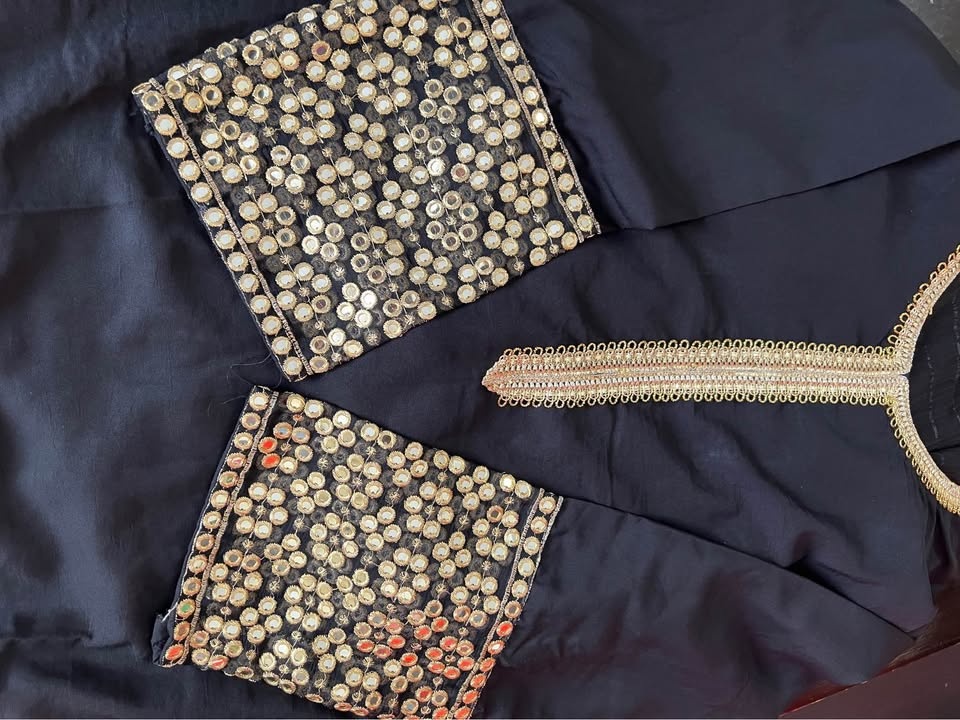 Beautiful black 3 pcs Mirror Work Suit with farshi shalwar