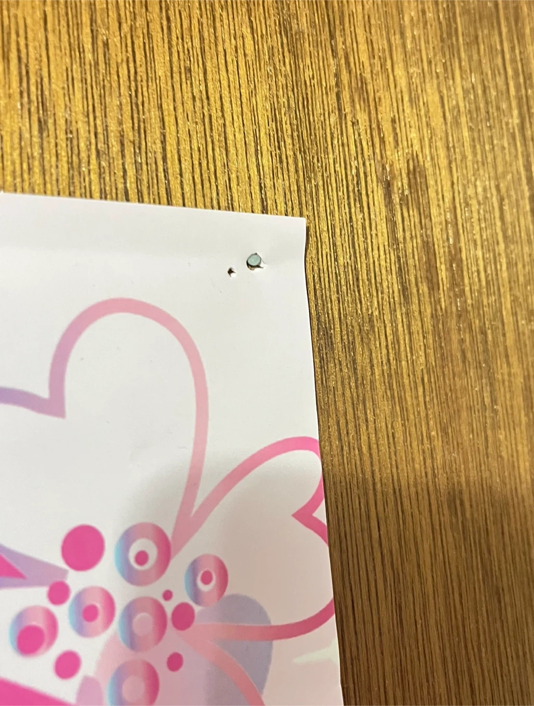 •Has hole punctures in the top and bottom corners from having it nailed onto a door