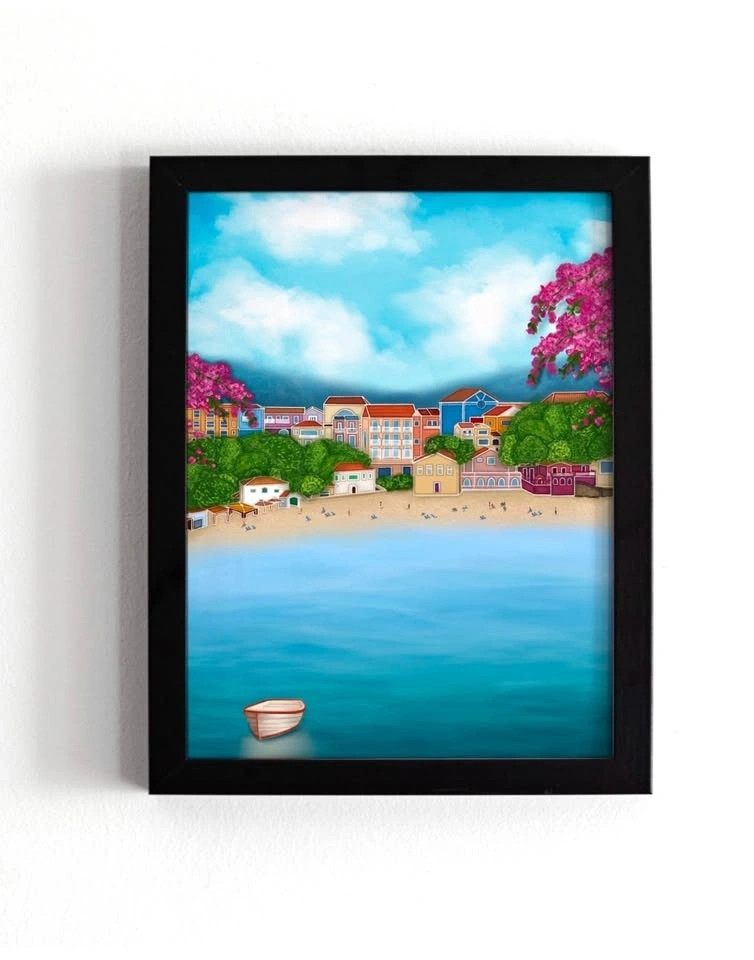 An enchanting beauty of this Greek seaside village with this captivating art print. Comes in 11in x 14in. $20 for print alone without frame (11x14). $36 for print with black frame (11x14).