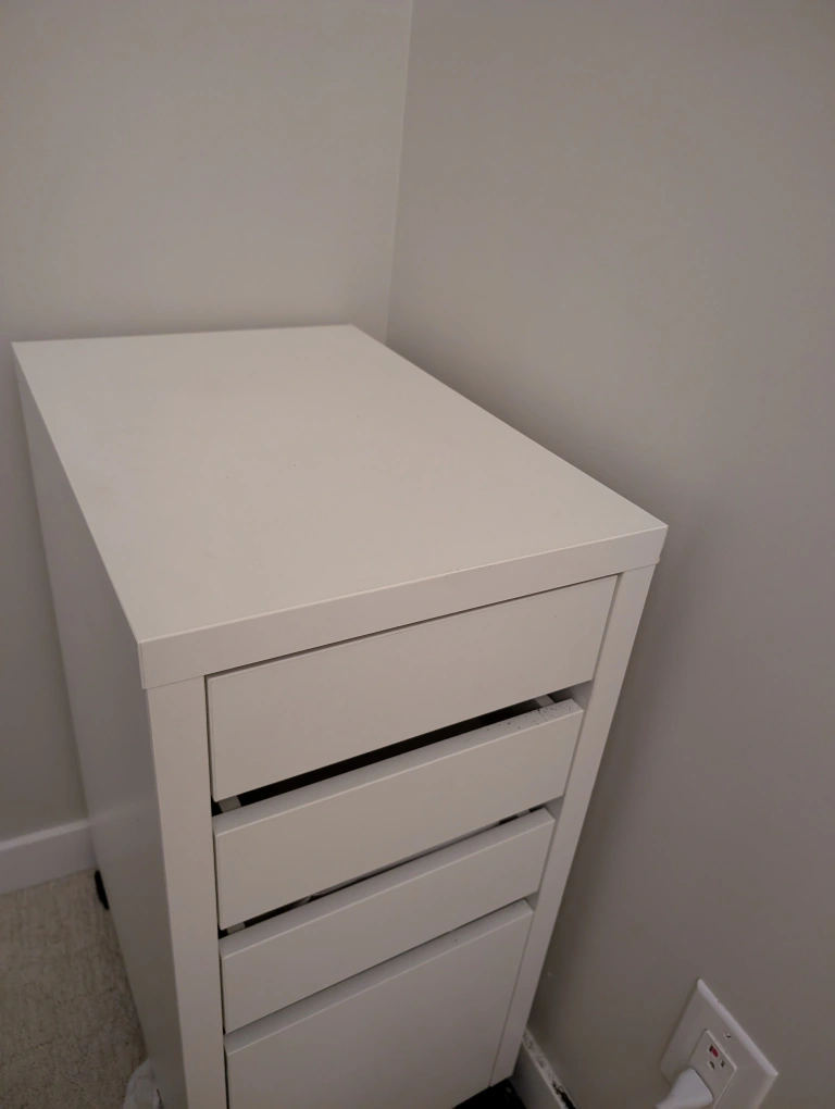 White finish little side chest of drawers. Ideal as a side table, printer table, or just storage use