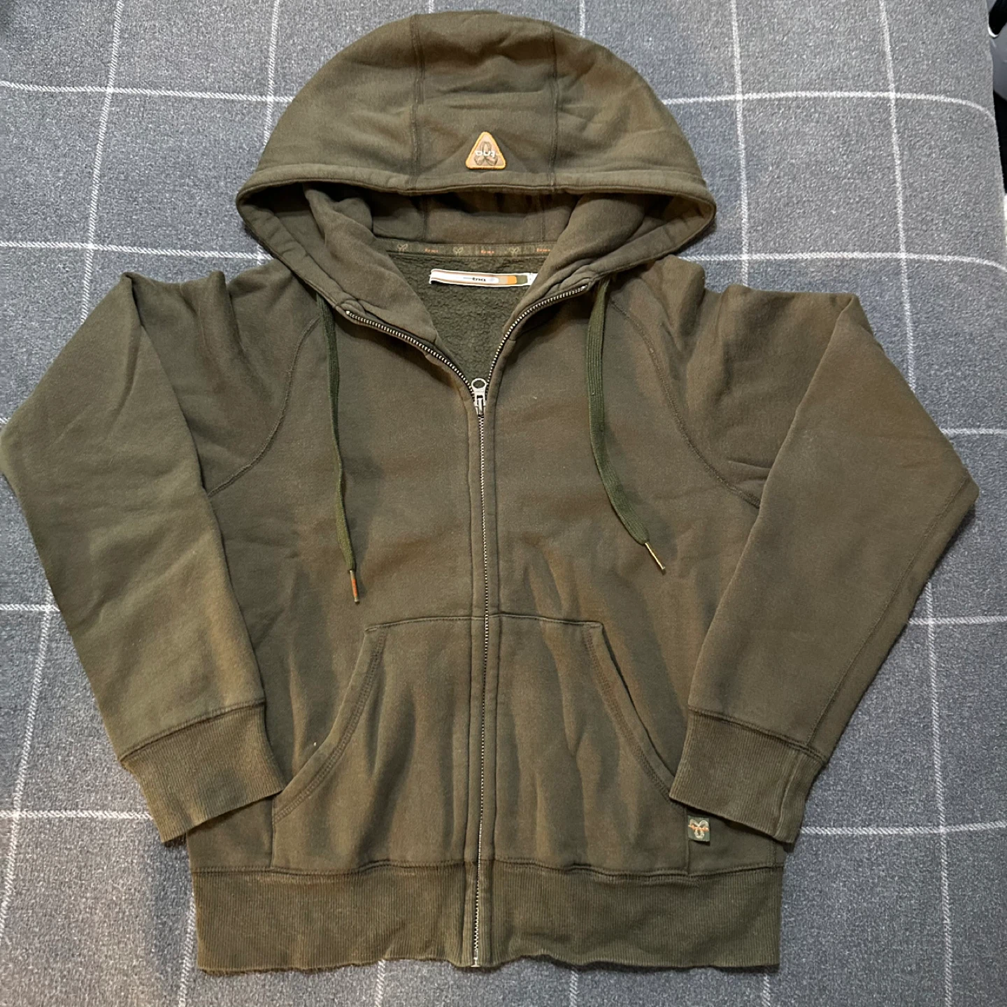 I'm selling a TNA zip-up hoodie in olive green. It's in great condition and a size small. Perfect for layering or wearing on its own!