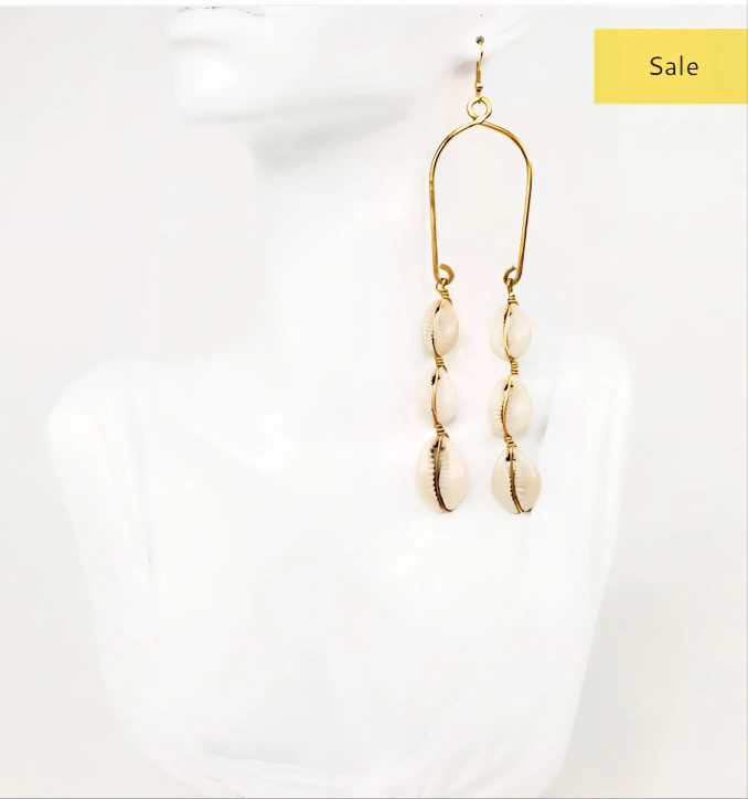 A beautiful pair of handmade African Brass earring features a delicate design with cowrie shells. These earrings will surely bring you joy.