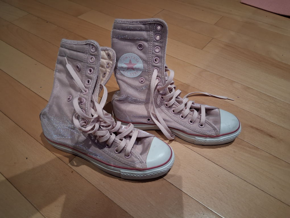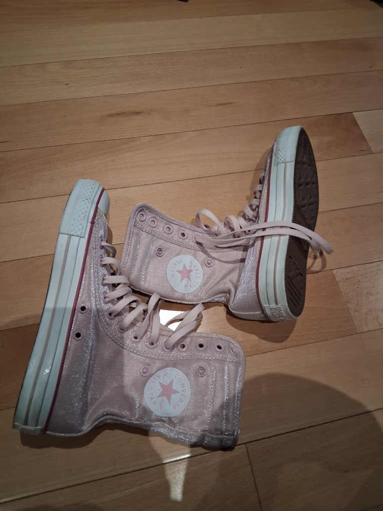 Selling a pair of Converse high-top sneakers in a lovely pink color! These sneakers are in good condition and ready for a new owner. Perfect for adding a touch of fun to any outfit!