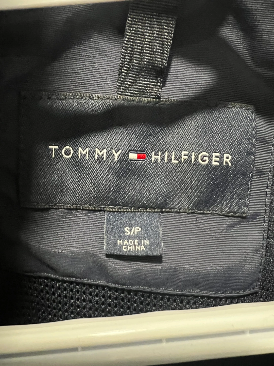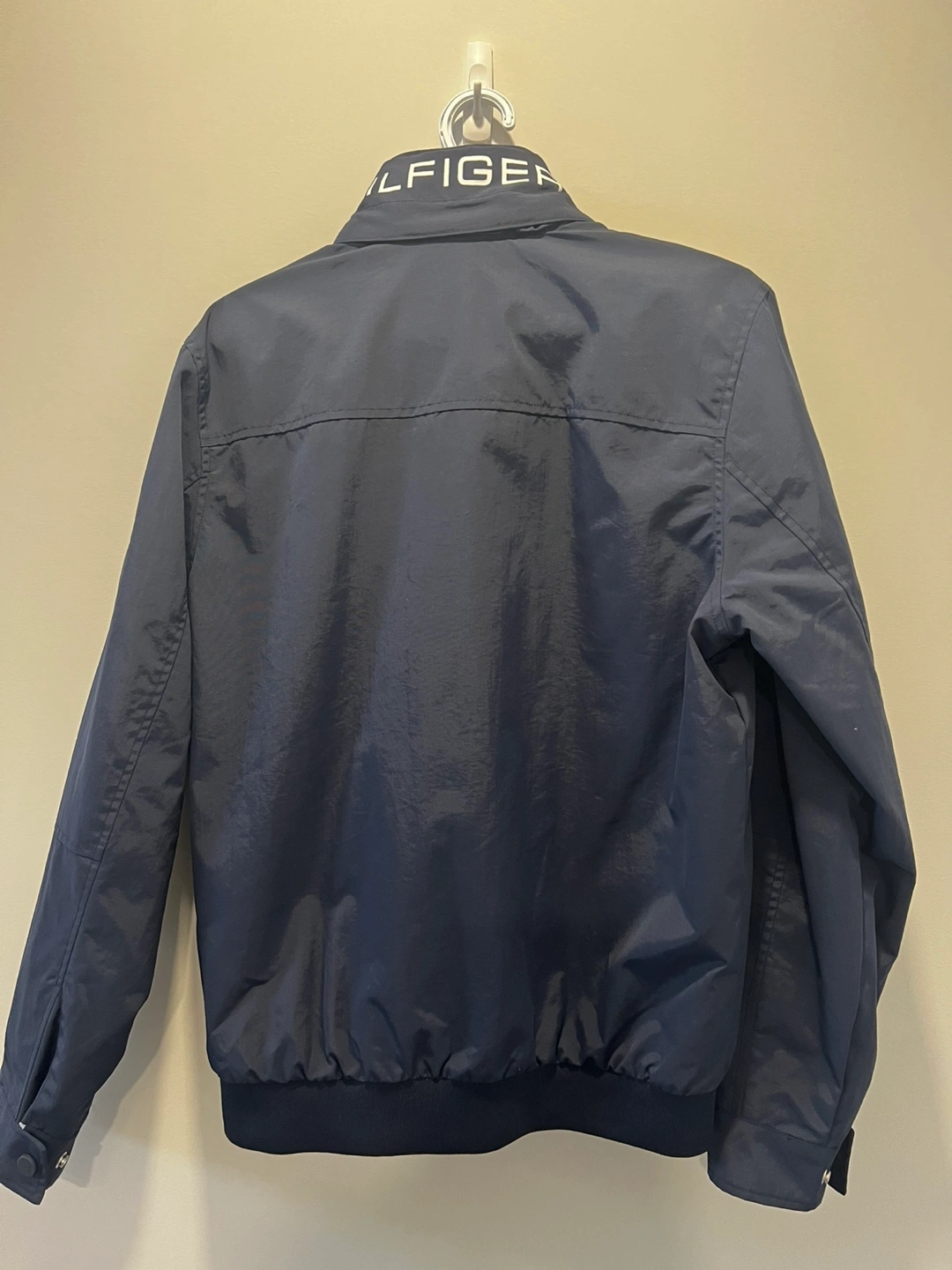 Classic navy bomber jacket from Tommy Hilfiger. It's a size S/P. Great for layering on cooler days!