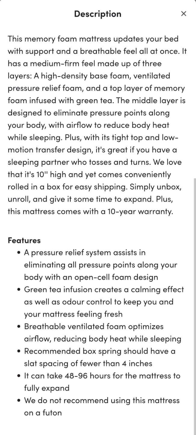 King Memory Foam Mattress - 10 inch