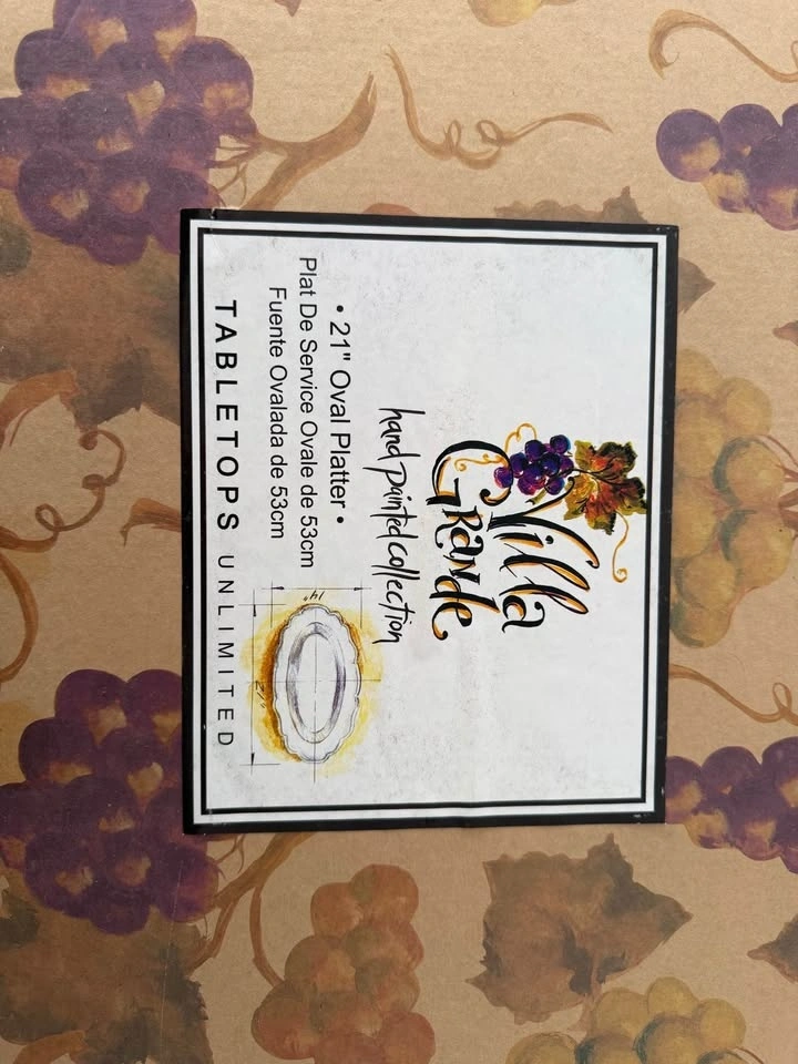 Large 21 inch oval platter. Hand painted grape design. Dishwasher safe, but not for microwave. Great for serving or just decor!