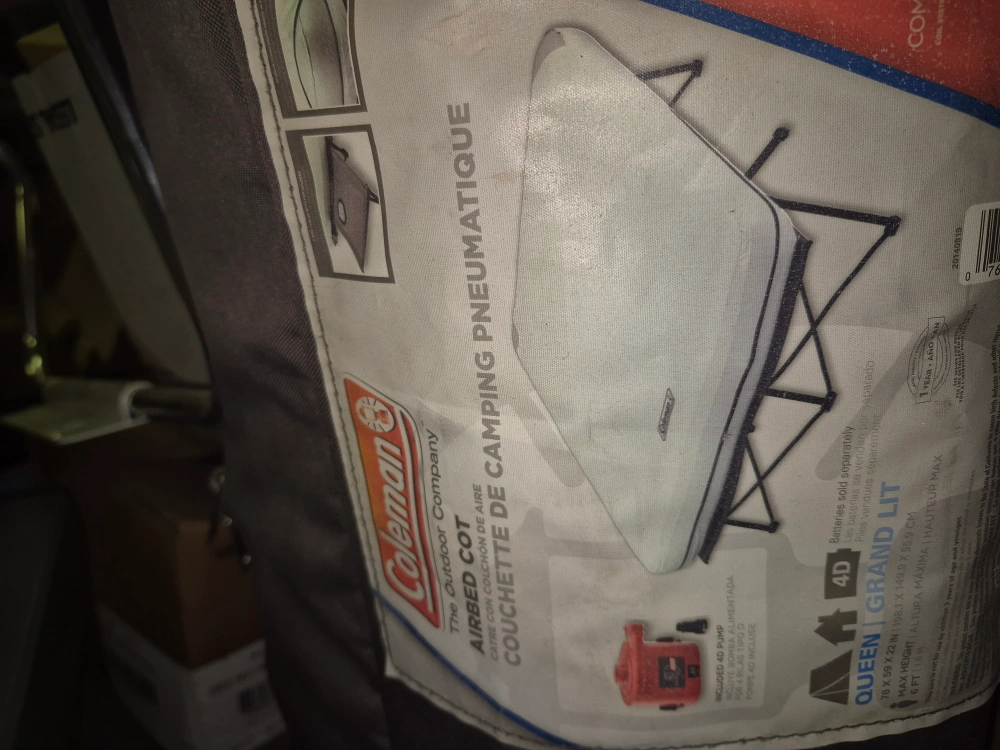 Selling a Coleman Queen Airbed Cot! It comes with a 4D pump. The dimensions are 78 x 59 x 22 inches. Perfect for camping or having guests over. pump not included