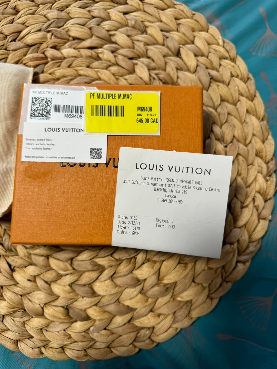 Selling a Louis Vuitton Multiple M.Mac wallet in excellent condition! The exterior is coated fabric, and the trim is vachetta leather. It comes with the original box. Originally bought for $645 CAD